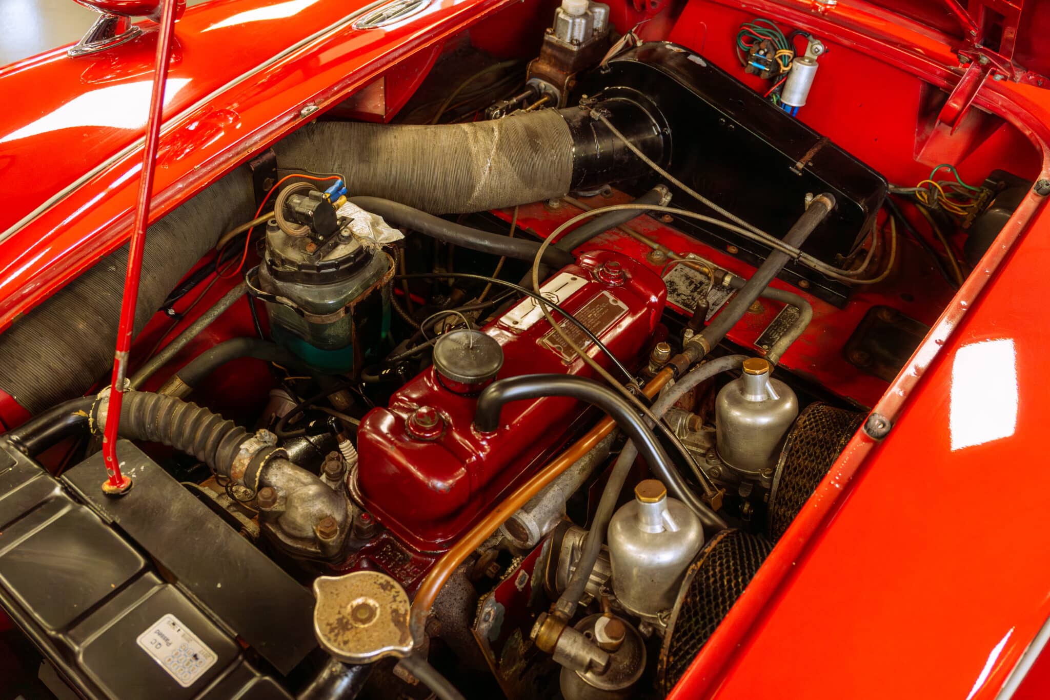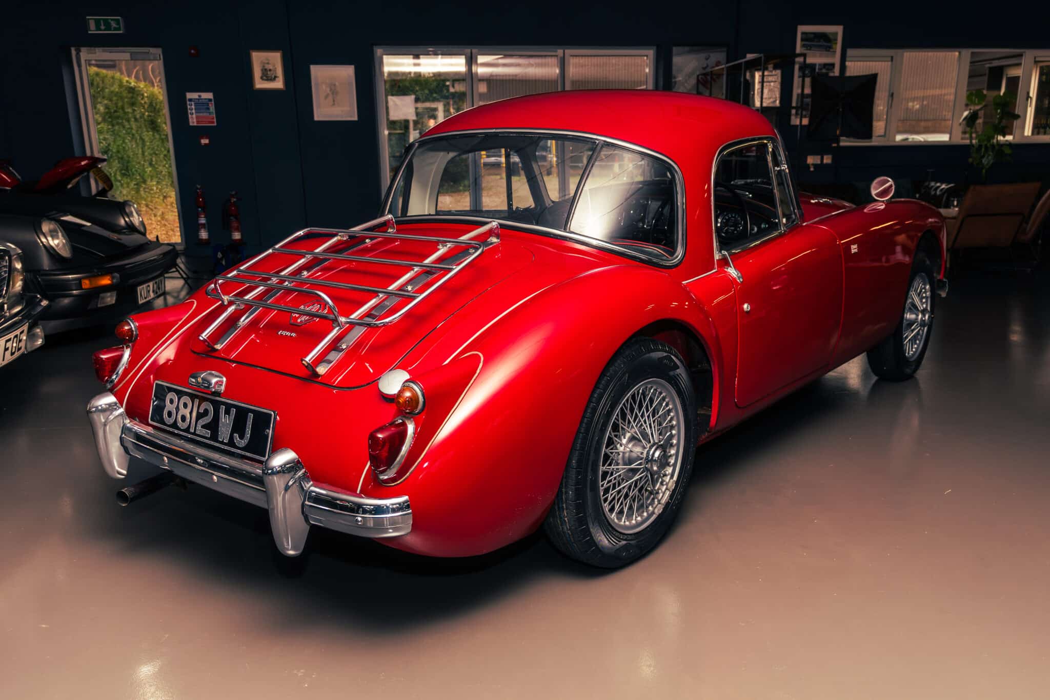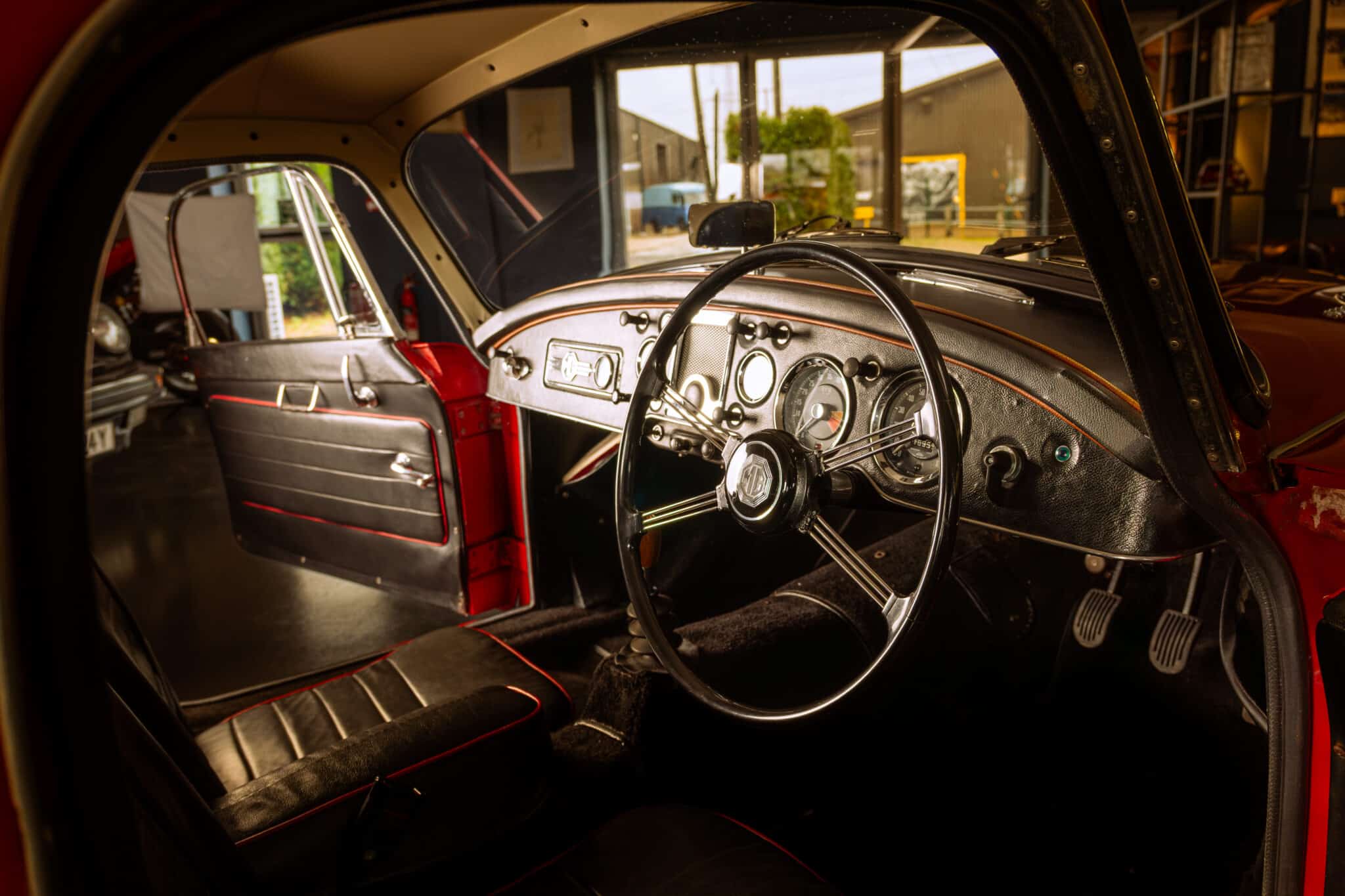 Our 1960 MGA 1600 Coupe is finished in the popular Chariot Red, over a black leather interior with red piping.