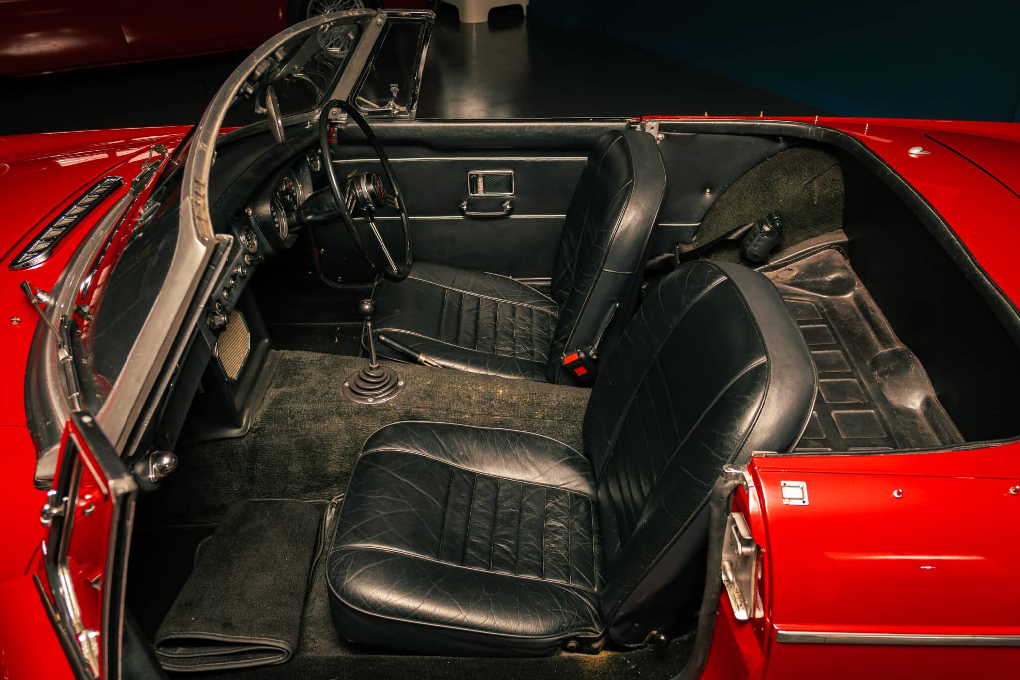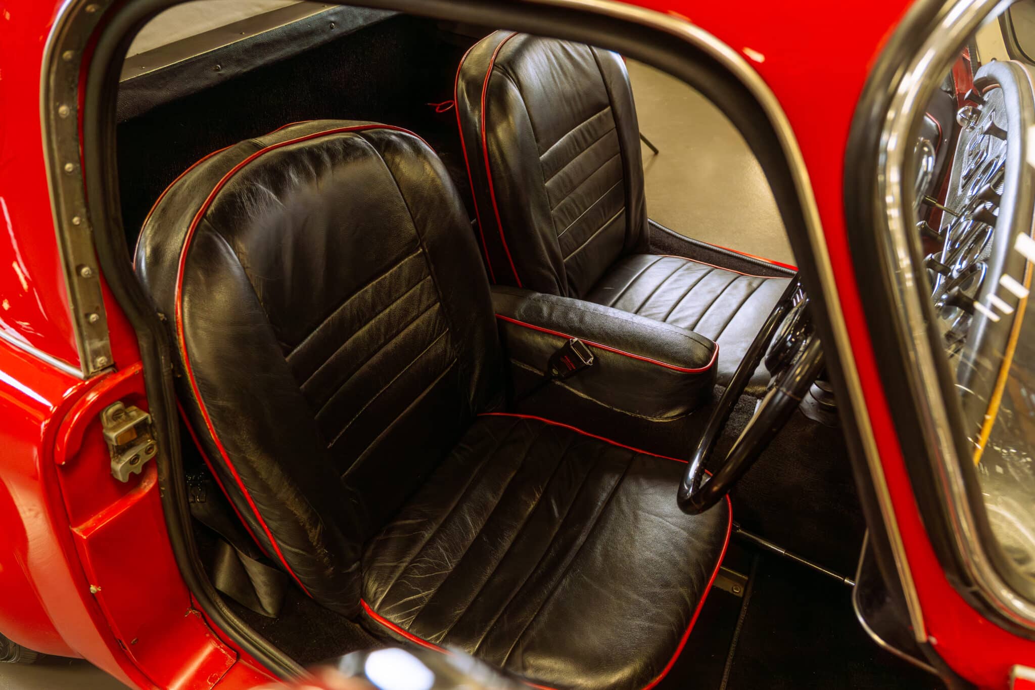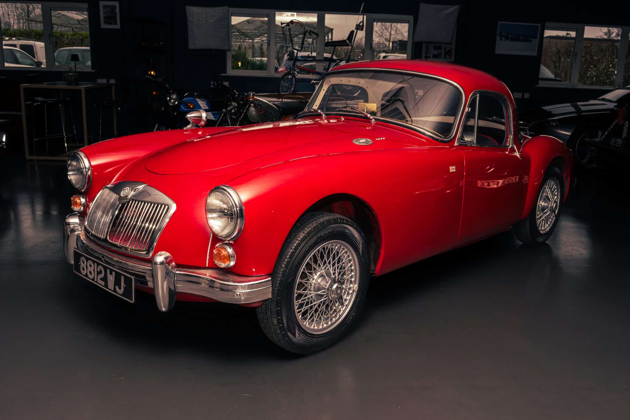 Our 1960 MGA 1600 Coupe is finished in the popular Chariot Red, over a black leather interior with red piping.