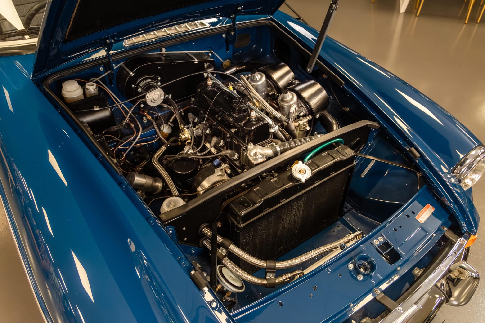 Alongside its new paintwork, the workshop team previously sandblasted various components, undersealed the car, set up the carbs, fitted new boot carpet, installed new halogen headlights, and completed other repairs and improvements.