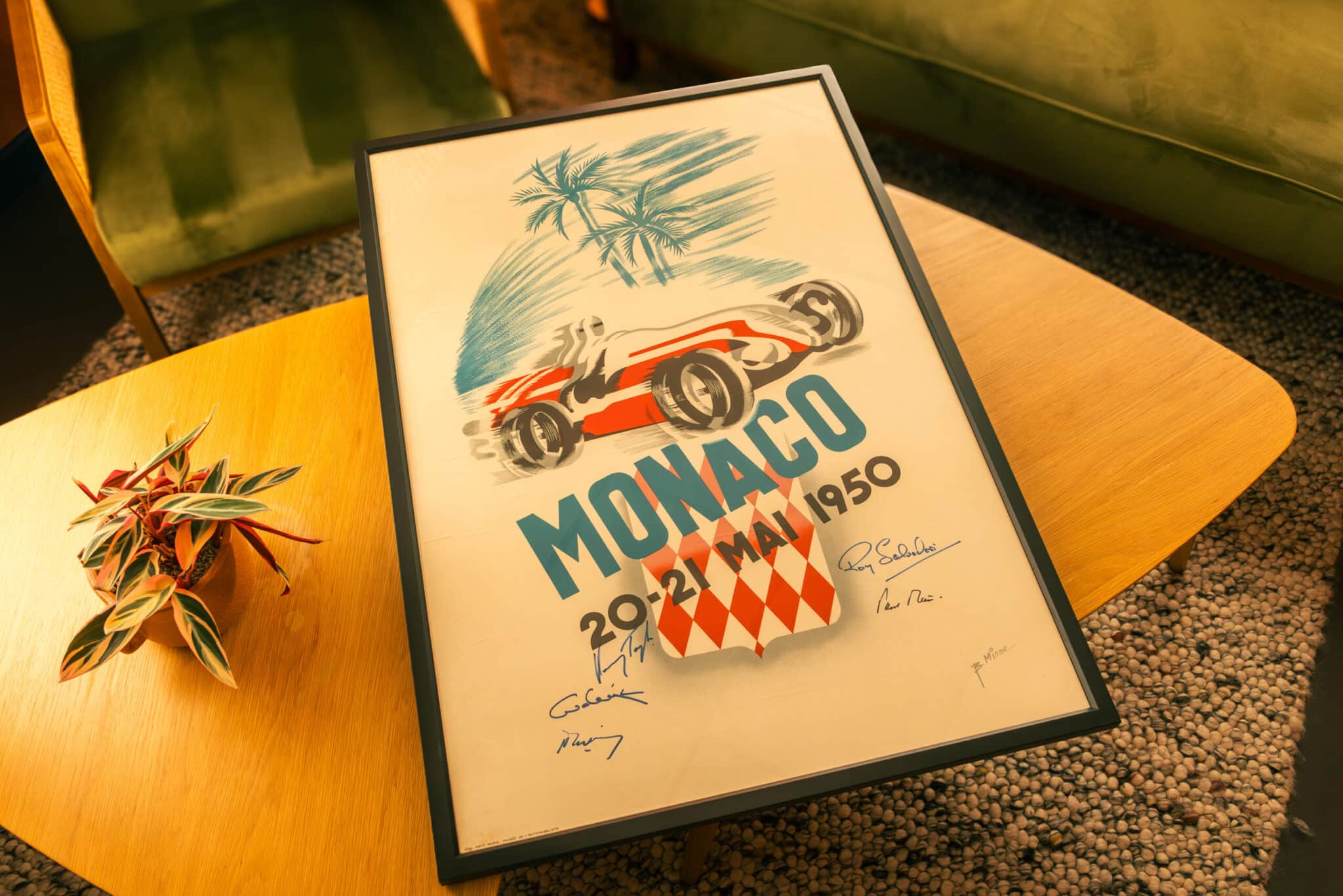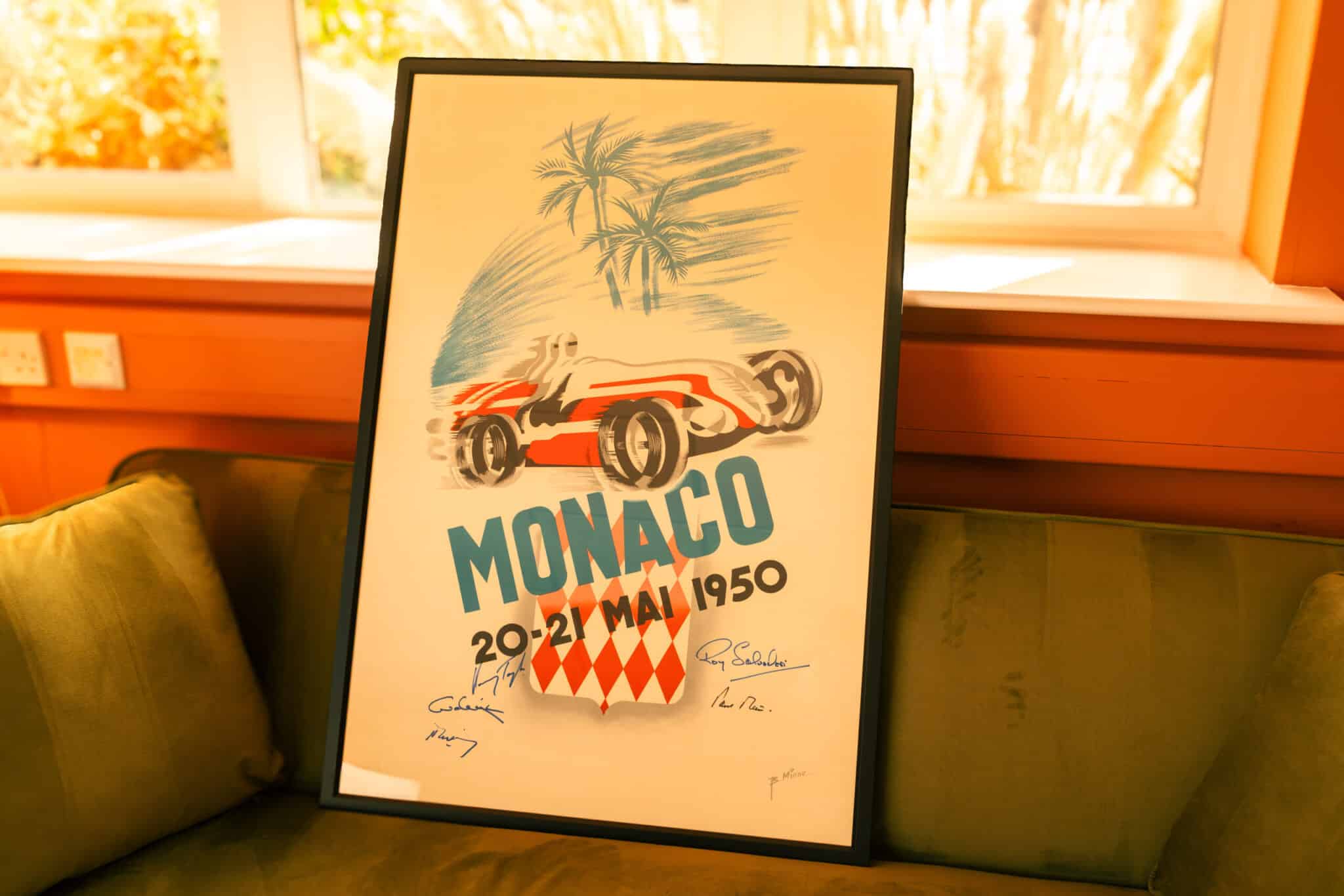This example has been signed by five well-known names from the racing world: Henri Taylor, Roy Salvadori, Karl Wendlinger, Robert Mieres, and Paul Frère.