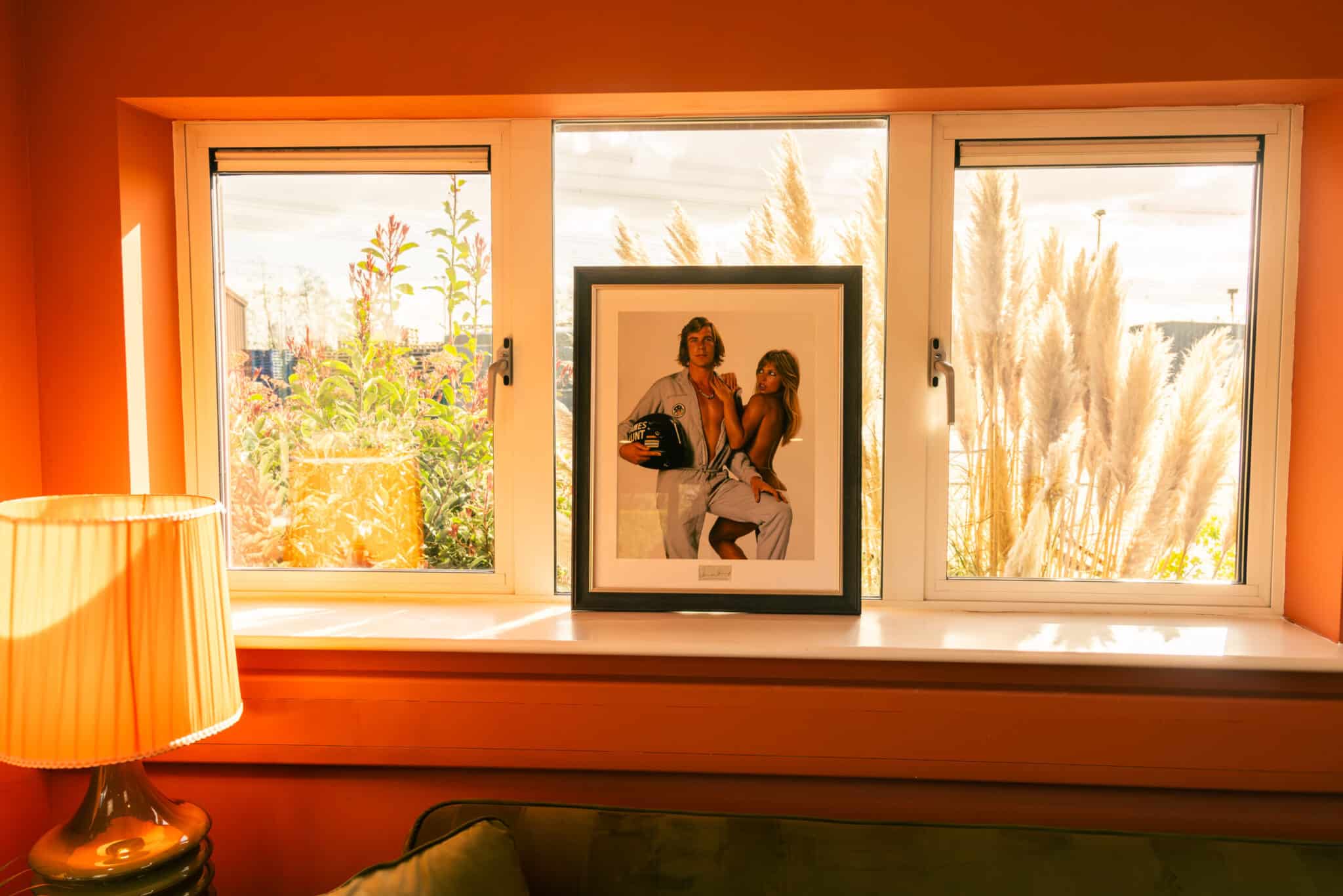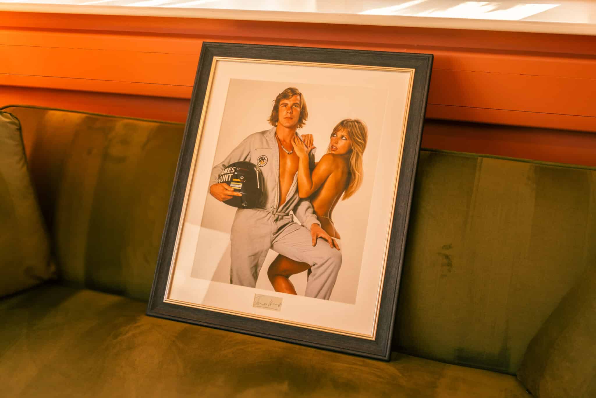 In this print, Hunt is pictured with glamour model Suzie Shaw, showcasing his charismatic personality.