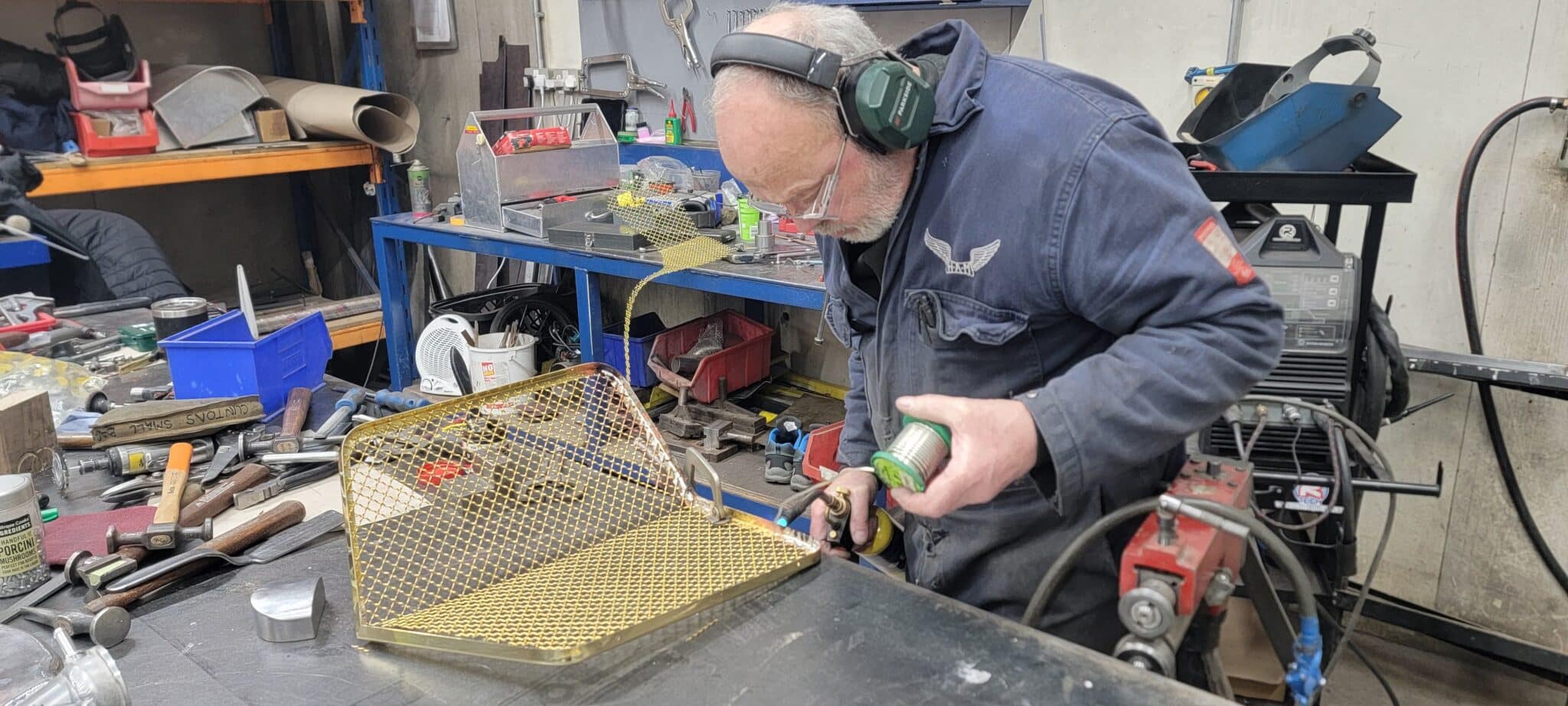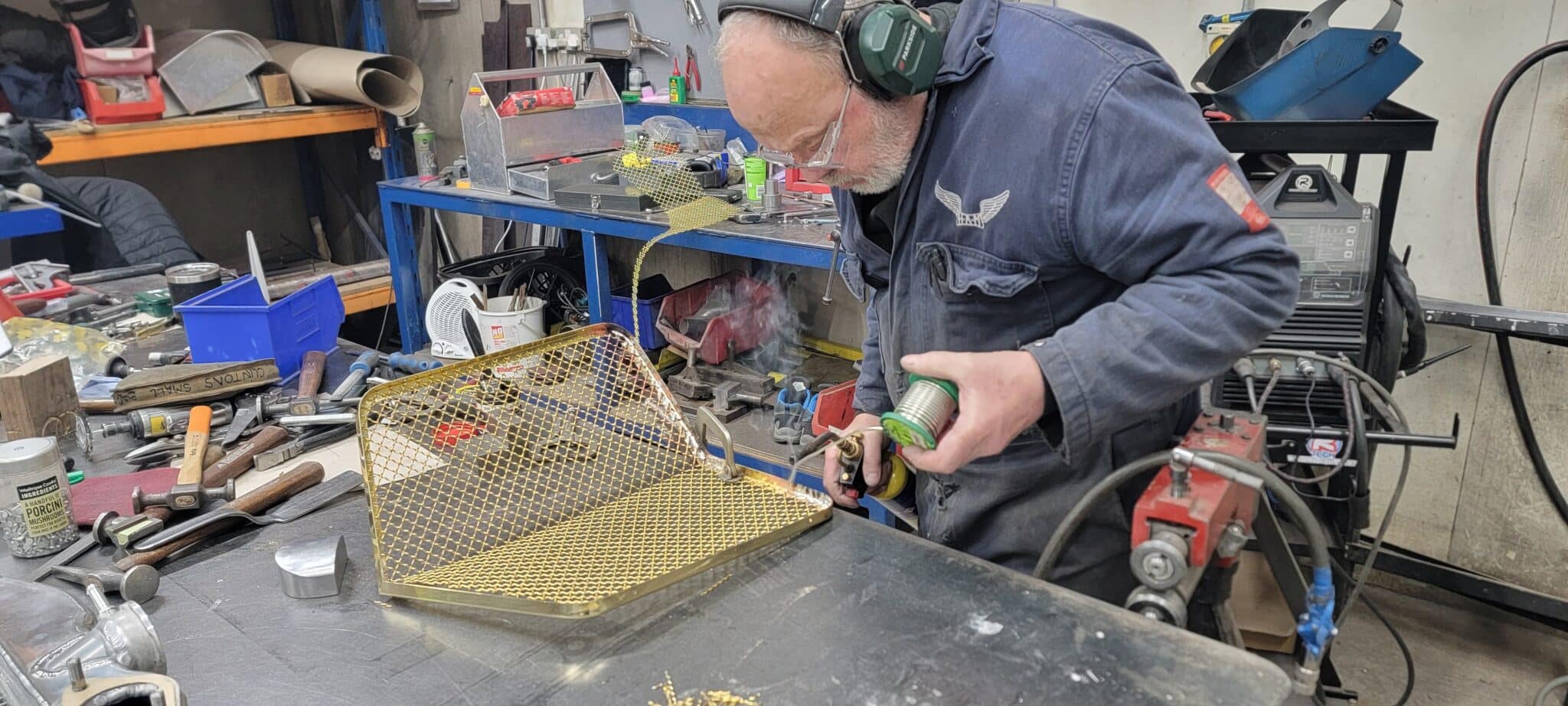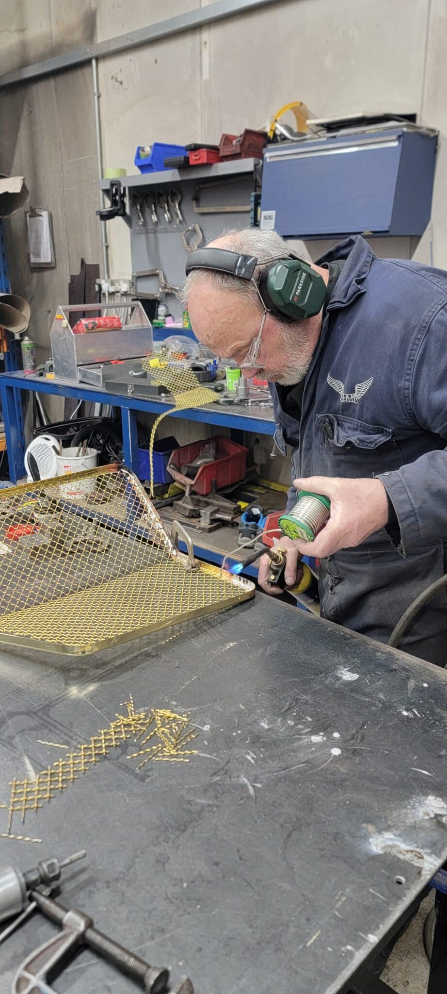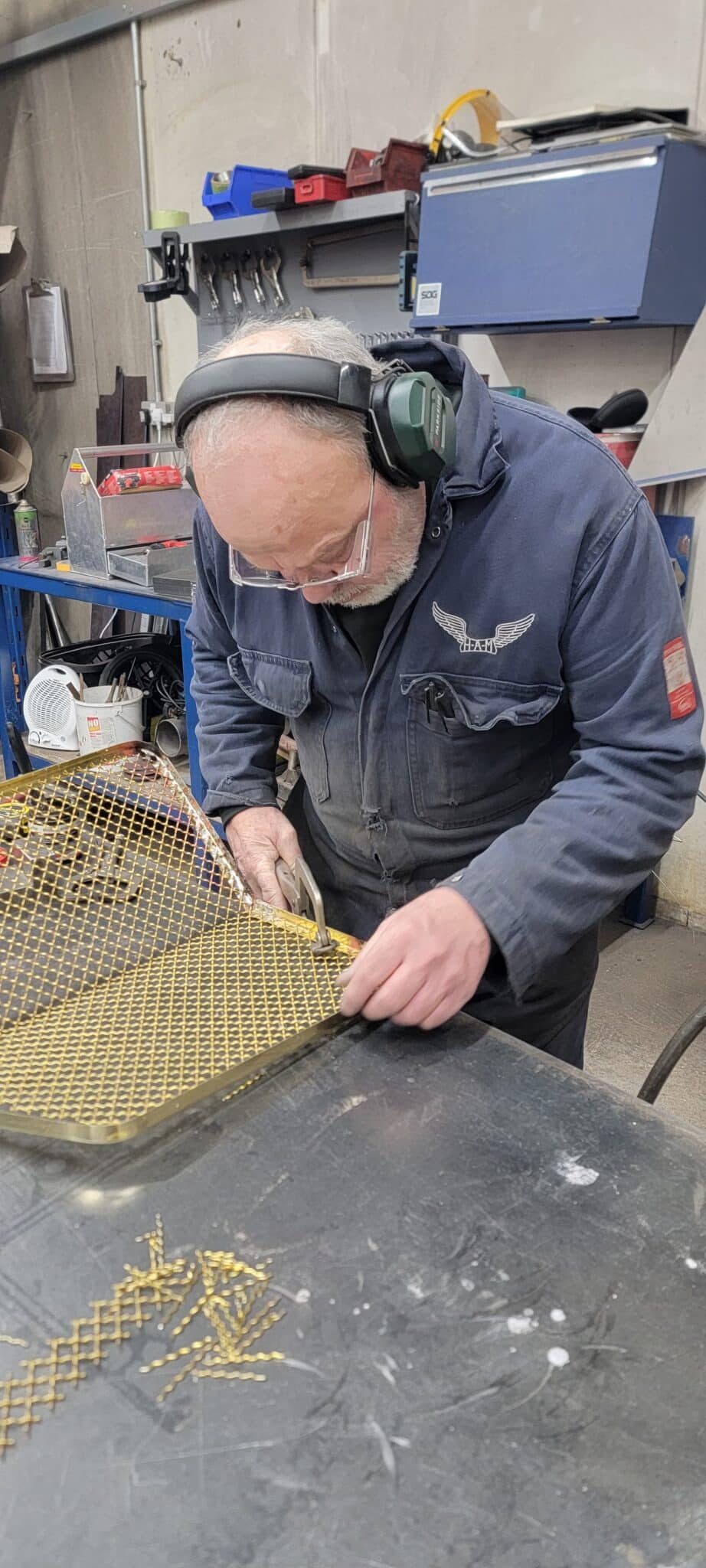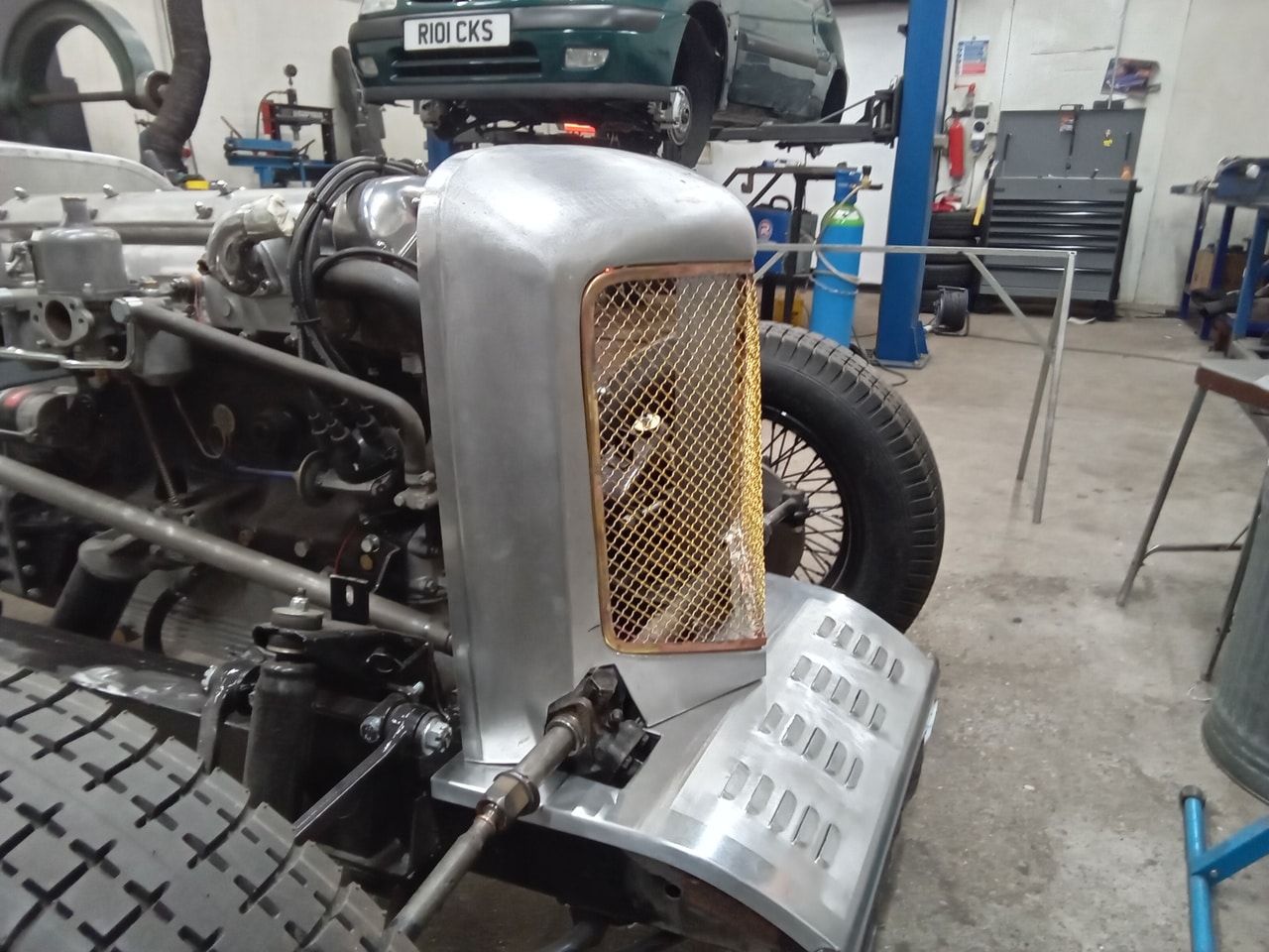 The 1954 Jaguar XK120B project is moving along in the background of our restoration workshop. Our fabricator Clinton has made the new radiator surround from scratch, which has also been meshed for the original early Jaguar look.