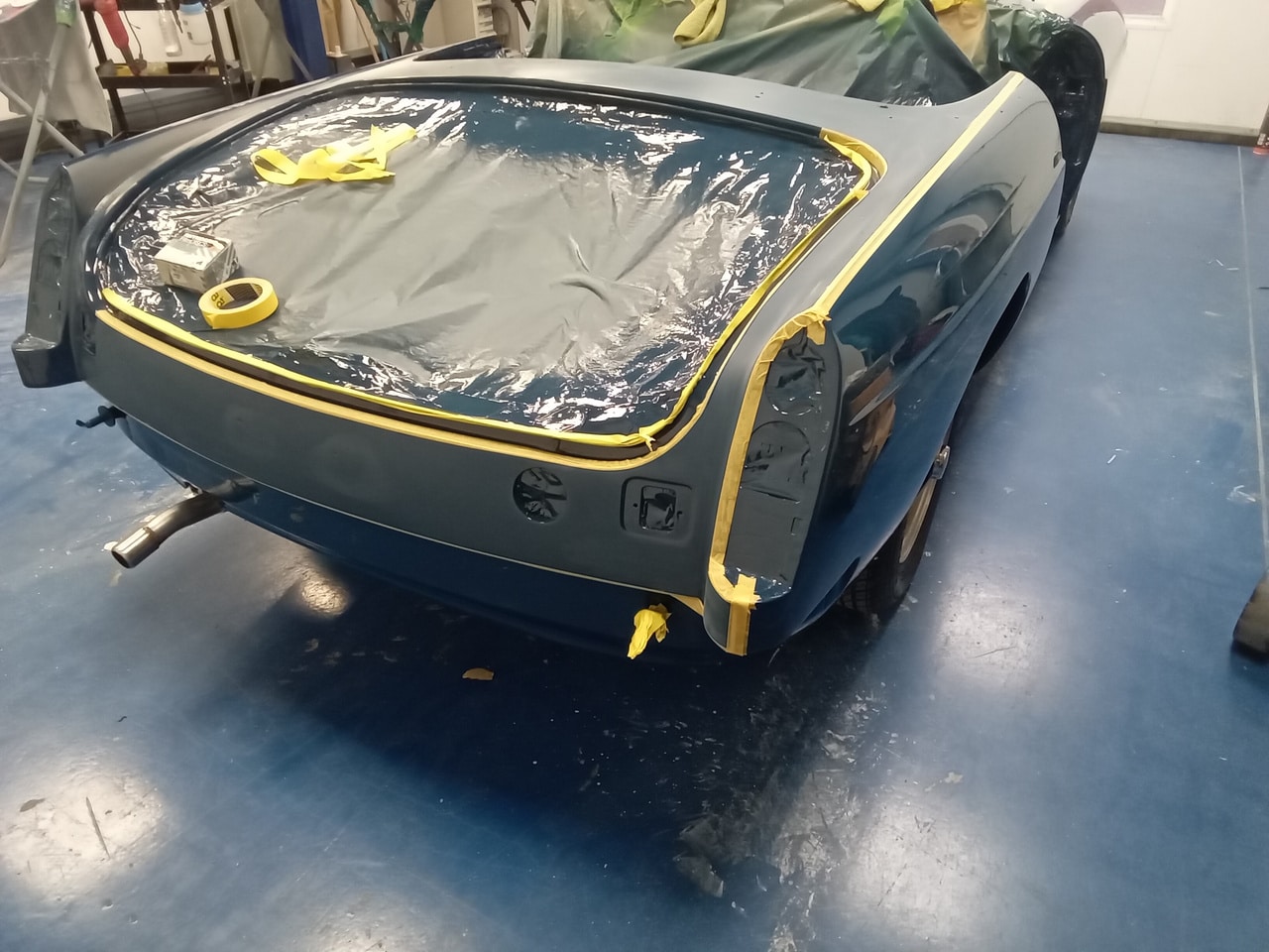 Mauro, one of our amazing paint and body technicians, polished the now all-blue bodywork before working alongside paint and body manager Chris to get the car back together in order for the Tony, our logistics coordinator to have it loaded back up in our enclosed trailer and delivered to a photoshoot.