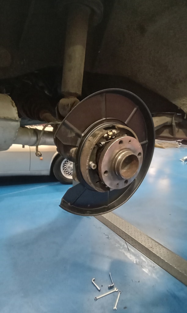 The restoration of our 1987 Maserati BiTurbo is progressing along thanks to our technicians here at the Bridge Classic Cars workshop. Jon, one of our amazing technicians, has been working on Saturday’s to get the iconic BiTurbo back together better than before. This time, Jon has been working on a rear brake rebuild for the car.