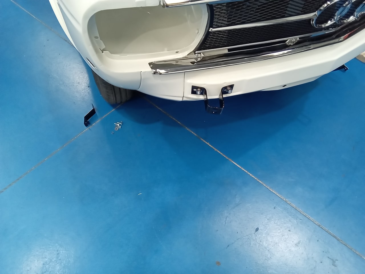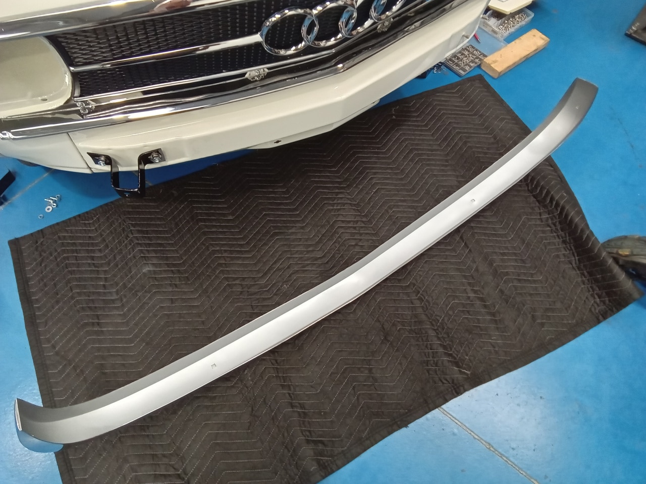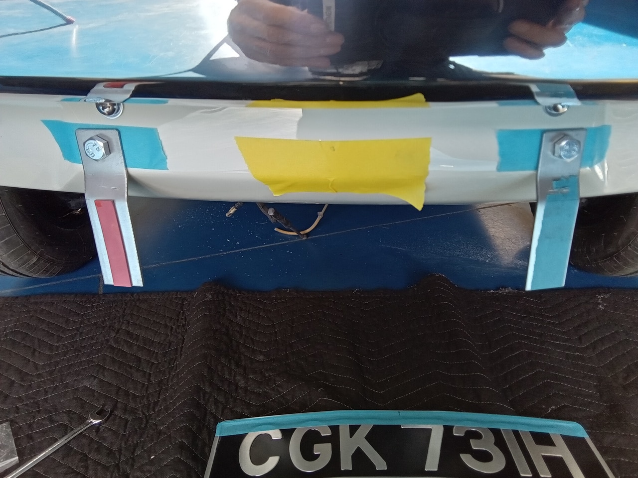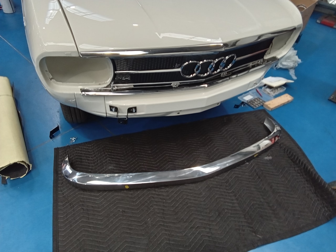 Dave has fitted up the signature 4-ring grille to the car before beginning to fit and readjust the bumper irons to give this piece the best fitment possible to then begin to make the number plate mounts.