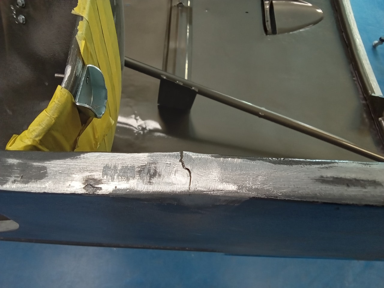Our paint and body technician Mauro has been focusing his efforts on the bonnet of the 1955 Aston Martin DB2/4 Drophead Coupe. As part of gapping the panels on the classic Aston Martin here at the Bridge Classic Cars restoration workshops, Mauro has filed and sanded back bonnet edges to make sure they are equal and even across the entire single clamshell.
