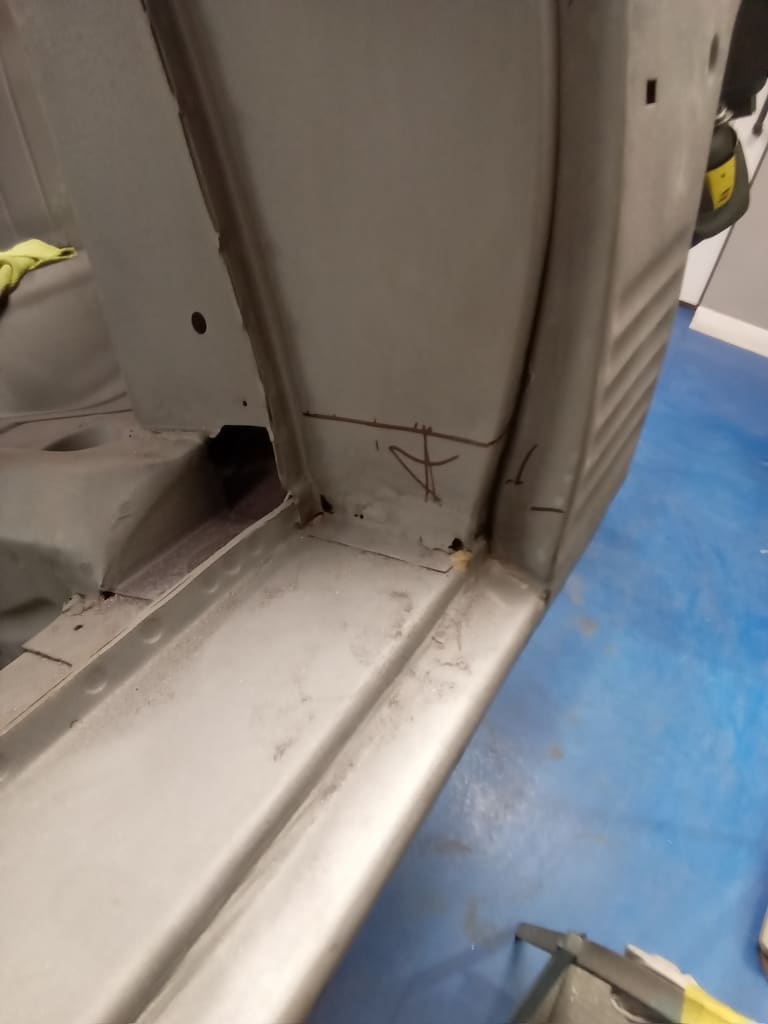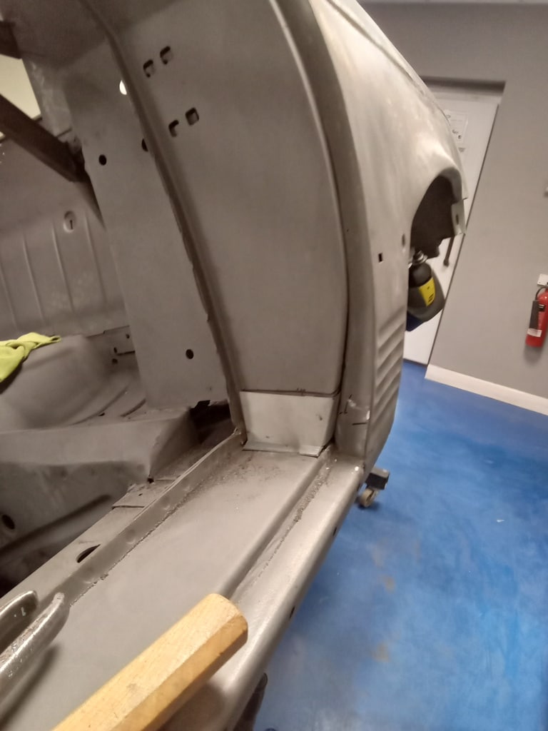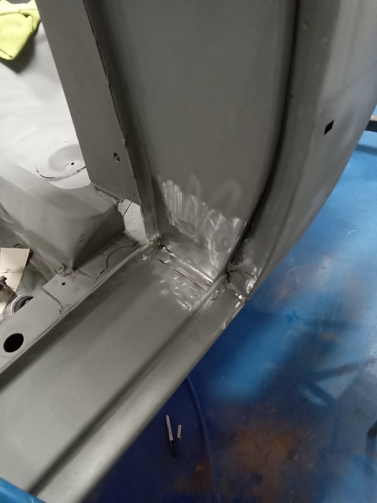 After coming back from being retreated, Greg has found a few hidden bits of rust in the door jams of the 1978 Mercedes 350SL currently undergoing a full restoration at the Bridge Classic Cars HQ in Suffolk. After noticing it, Greg has carefully cut back all of the effected areas and replaced it with a newly fabricated patch panel and welded it up. he also did the same for a small area in the engine bay.