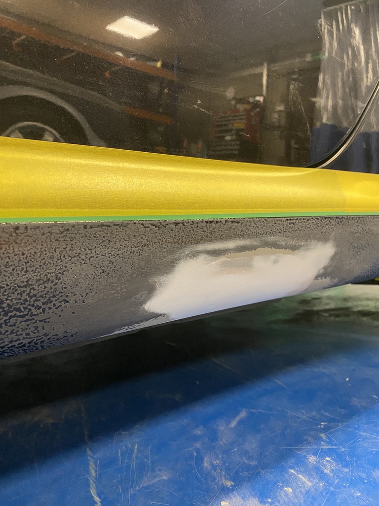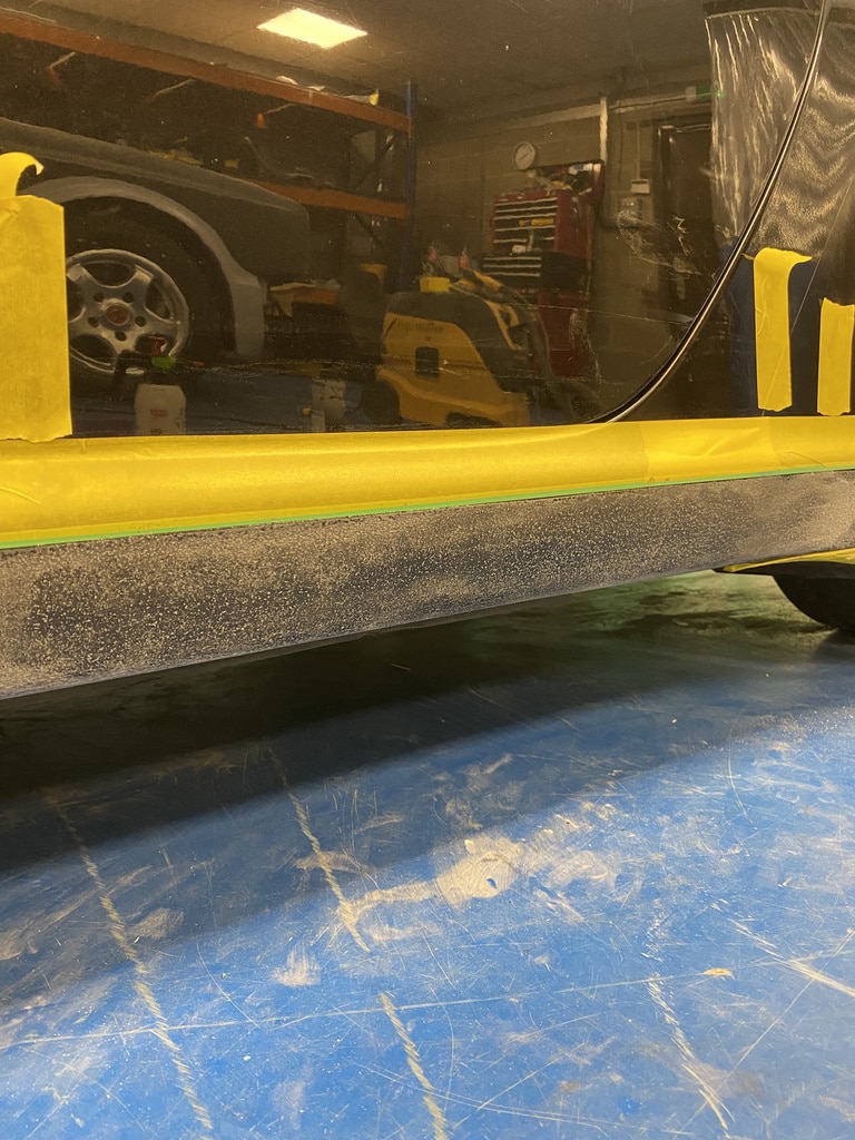Our paint and body team have been working their way through a few small areas of repair on the 2005 Porsche 911. The sill at some point has recieved a quite serious dent, but our paint and body technician Adam managed to pull the dent out and the carry out a paint repair to the small section of the sill.