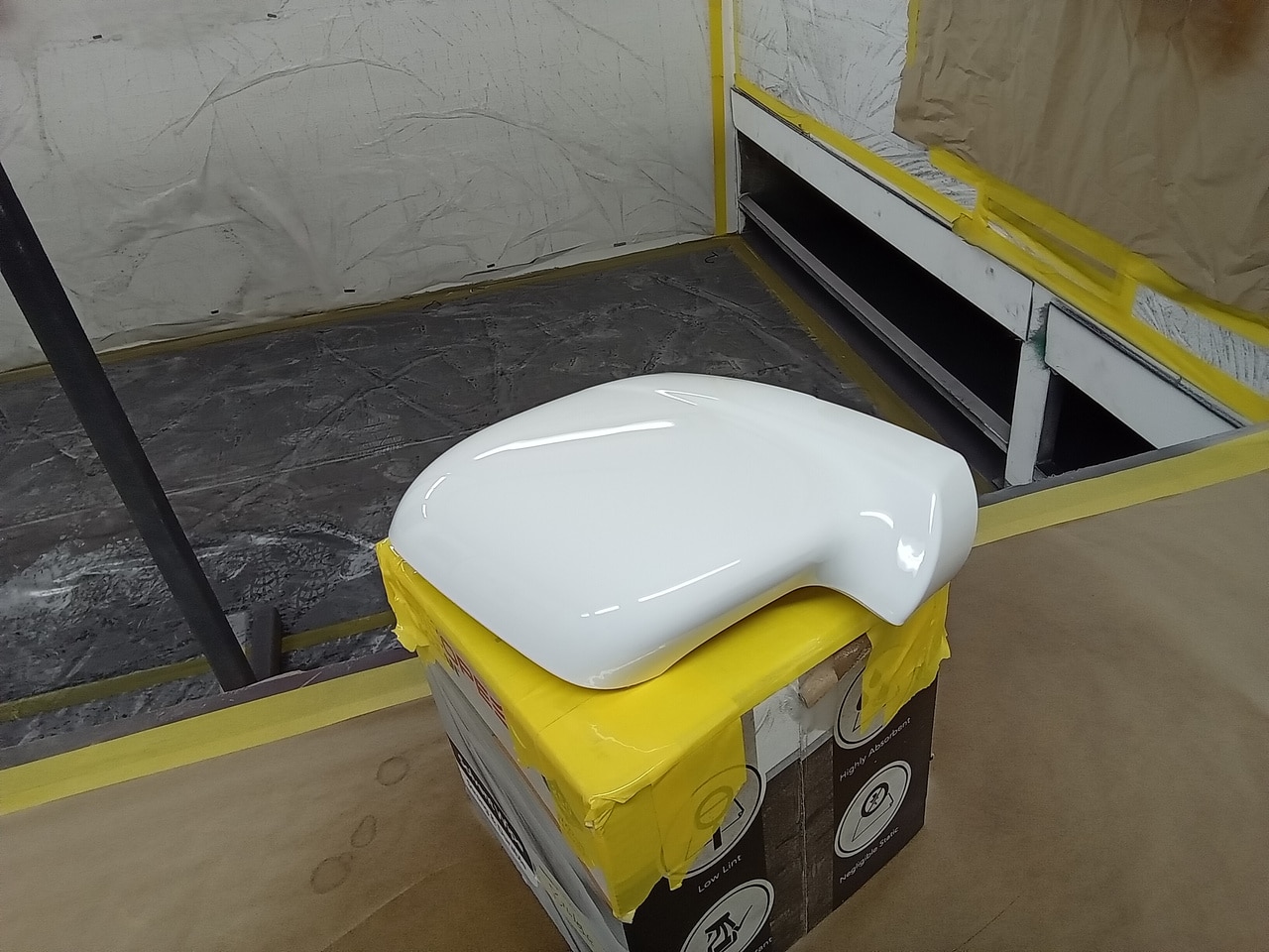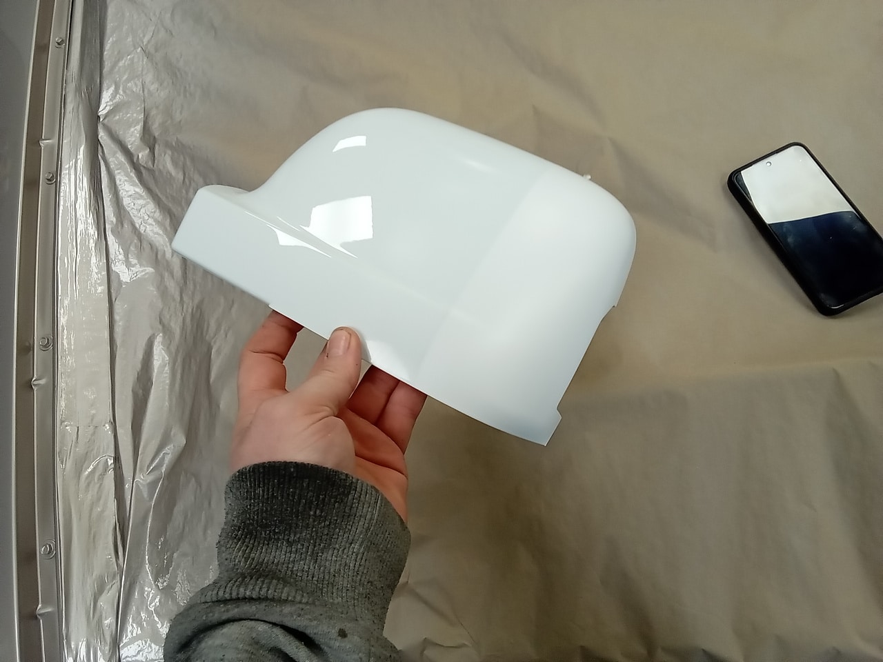 After a breif encounter with a fence, the team have had to carry out a small repair and respray on the wing mirror of our 2025 Renault Trafic. Our painter Chris has carefully prepared and then resprayed the matched up paint before putting the whole unit back together.