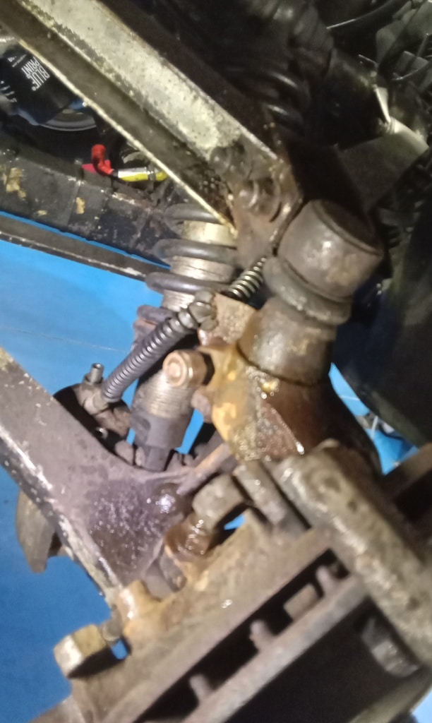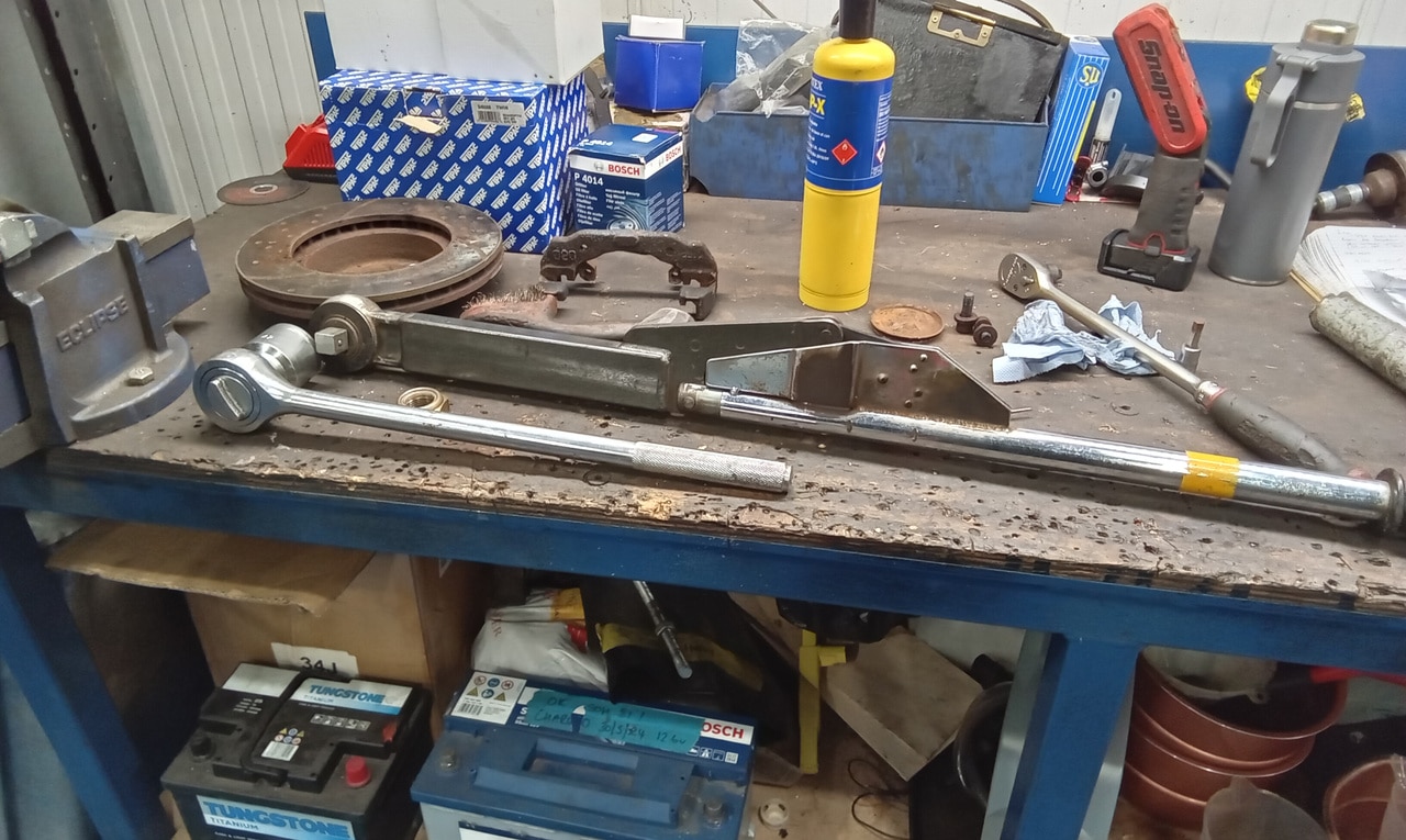 ”Refit and tighten sump bung. Fit new oil filter. Check offside front hub tight and found top pinch bolt not clamping fully even though it’s tight. Remove wheel and tighten pinch nolt as much as I can and refit wheel to check p,ay. OK now, no play. Torque up wheel andrefit centre cap. Fill with oil and run up. Top up as required . Fit new clutch pedal rubber. Take outside and fill with synthetic fuel. Carry out road test. Steering out to left. Check tracking and adjust steering.Test around yard to check steering g straight. Return to workshop and adjust. Repeat process twice more and then test up the road. Closer now slightly out going towards Wickham and spot on coming back. OK for now, recheck when it gets a PDI.”