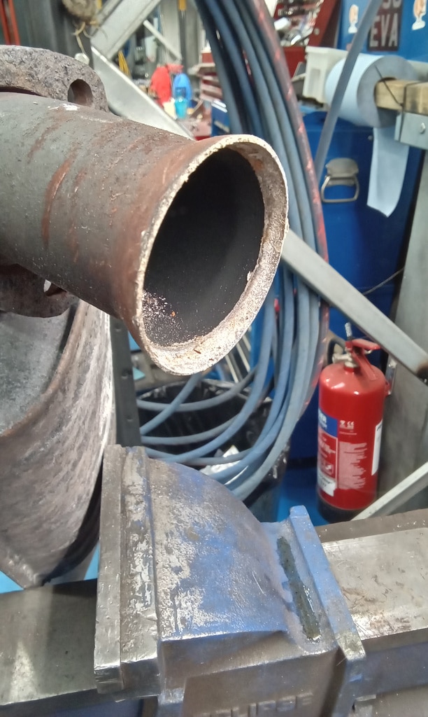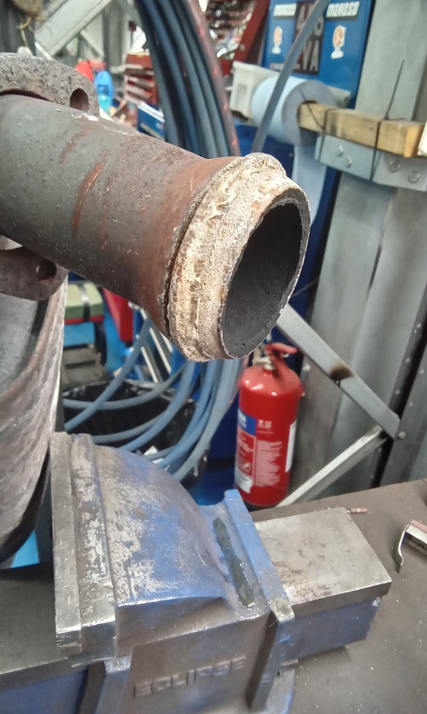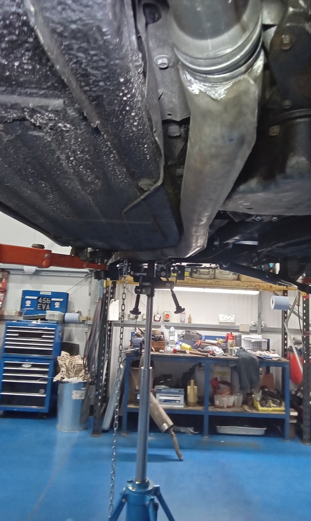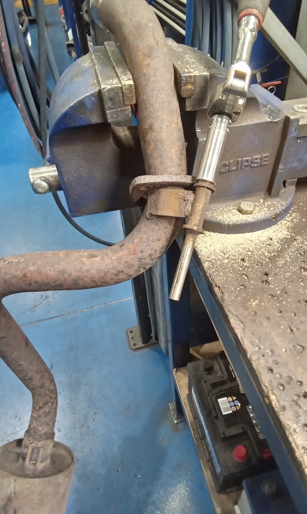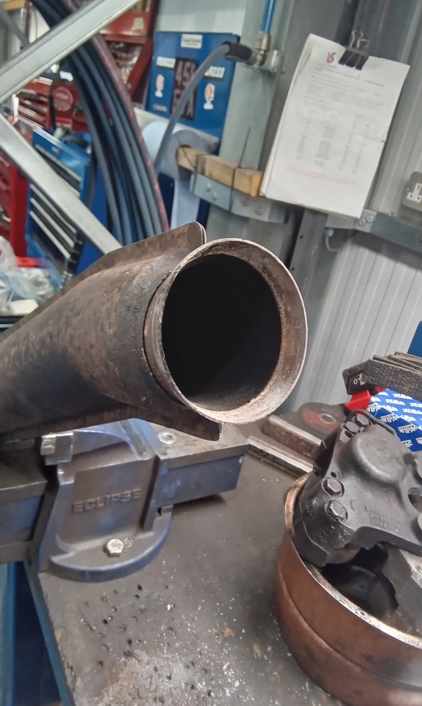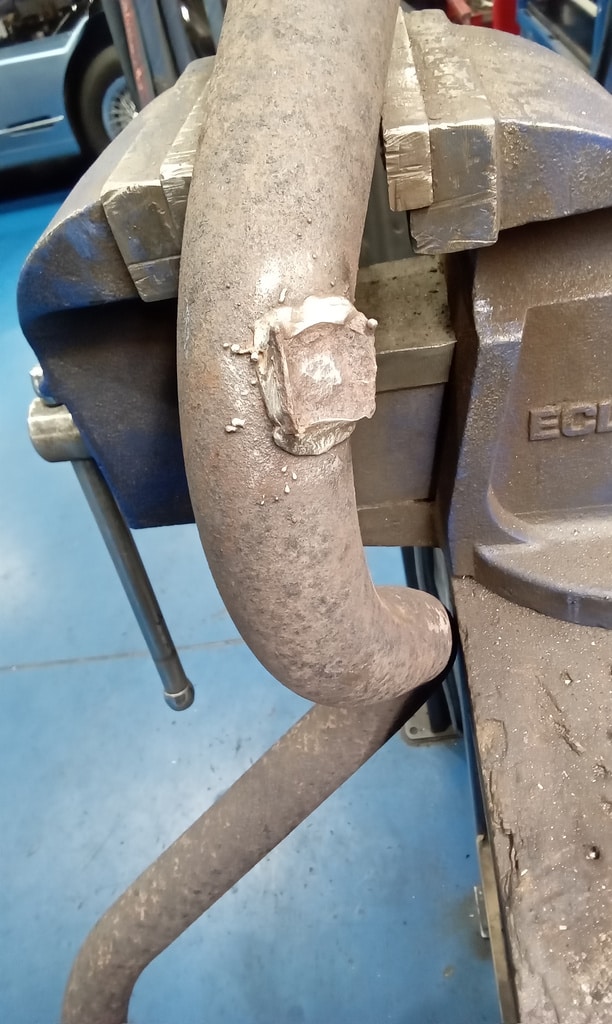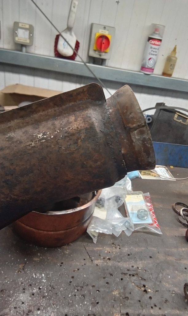 As part of the work on the exhaust system of the XJS, Jon has roomed the offside section for further inspection. With this, he managed to shake alot of material out of the catalytic convertor.
