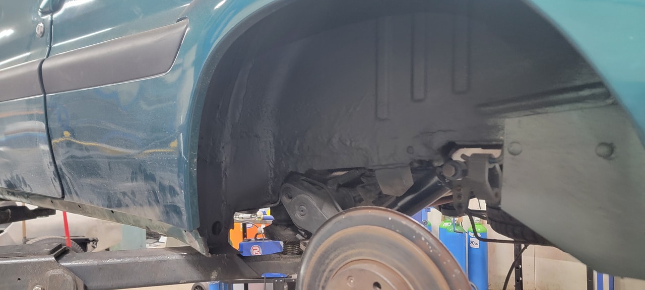 Our fabricator Greg has been finishing up some of the final jobs on the 1998 Citroen Saxo VTR. After carrying out repairs to the sills, Greg could go back around and seam seal everything as it would have been done in factory after he had made sure everything had been rust treated. Whilst everything dried, he could paint the heatshield and give the lug nuts a new lease of life.