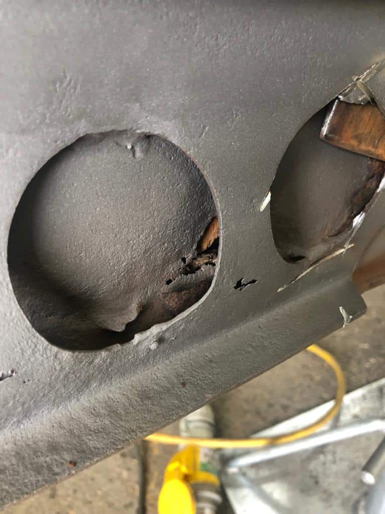 Unfortunately our Riley RMB chassis is suffering badly with internal rust and corrosion building up. On the surface it looks to be in a relatively solid state but when tipped up on one end large clumps of rust falls out.