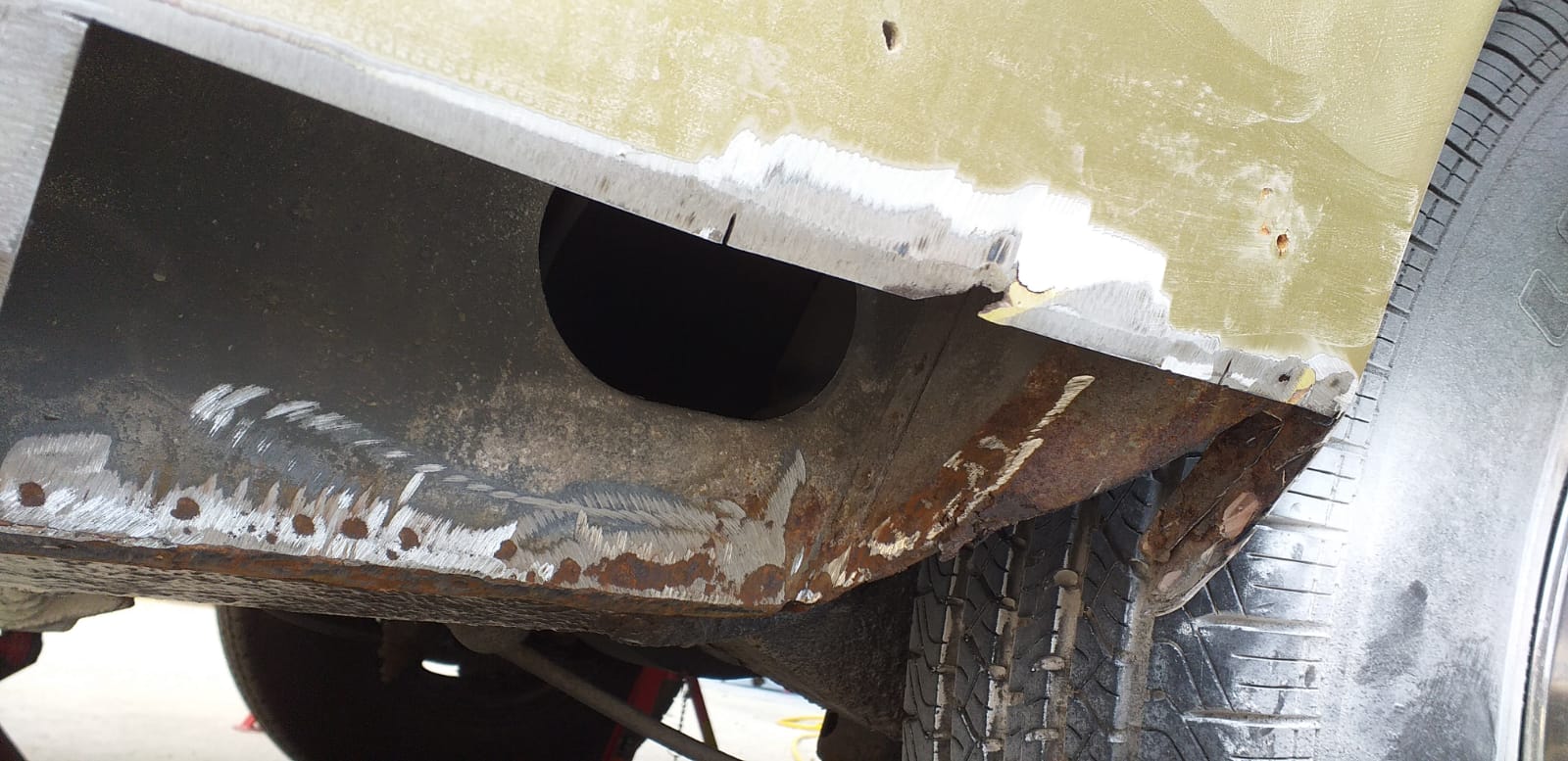 All of the corrosion that has developed over the years has now been properly addressed. New metal has been let in where old metal has been cut out. All areas have been properly treated before the two-tone paint application has been applied.