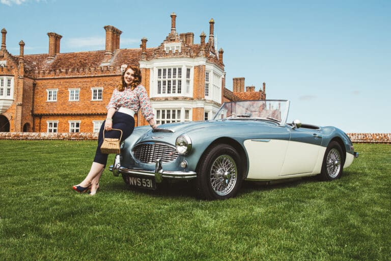 Out on location, their photography takes a different direction. At local locations, such as Pettistree House, Tide Mill, Helmingham Hall, and more, Nick and John capture the spirit of driving. It could be an image of Molly driving a beautiful classic vehicle through the countryside, or a photoshoot of a camper by the sea.