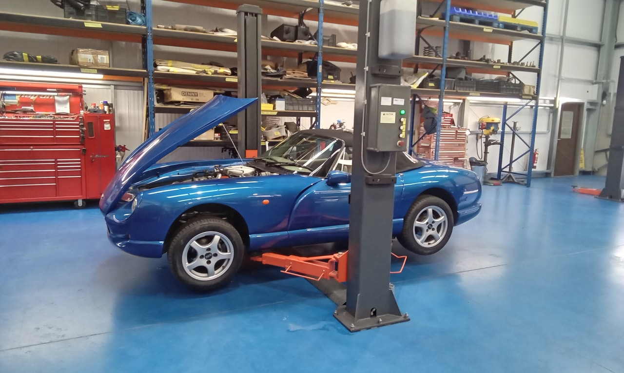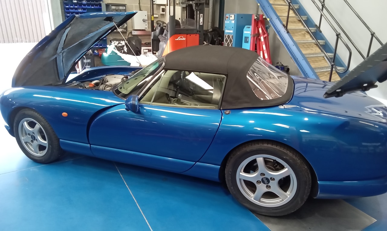 Jon carried out an inspection and service on the 1994 TVR Chimaera here at the Bridge Classic Cars HQ while also investigating some running issues. He checked the engine bay for potential faults and arranged for a new coolant temperature sensor to be ordered, as this is a common cause of problems on these engines. He also raised with the customer the importance of confirming when the fuel was last added, as the tank was full but the age of the fuel was uncertain.