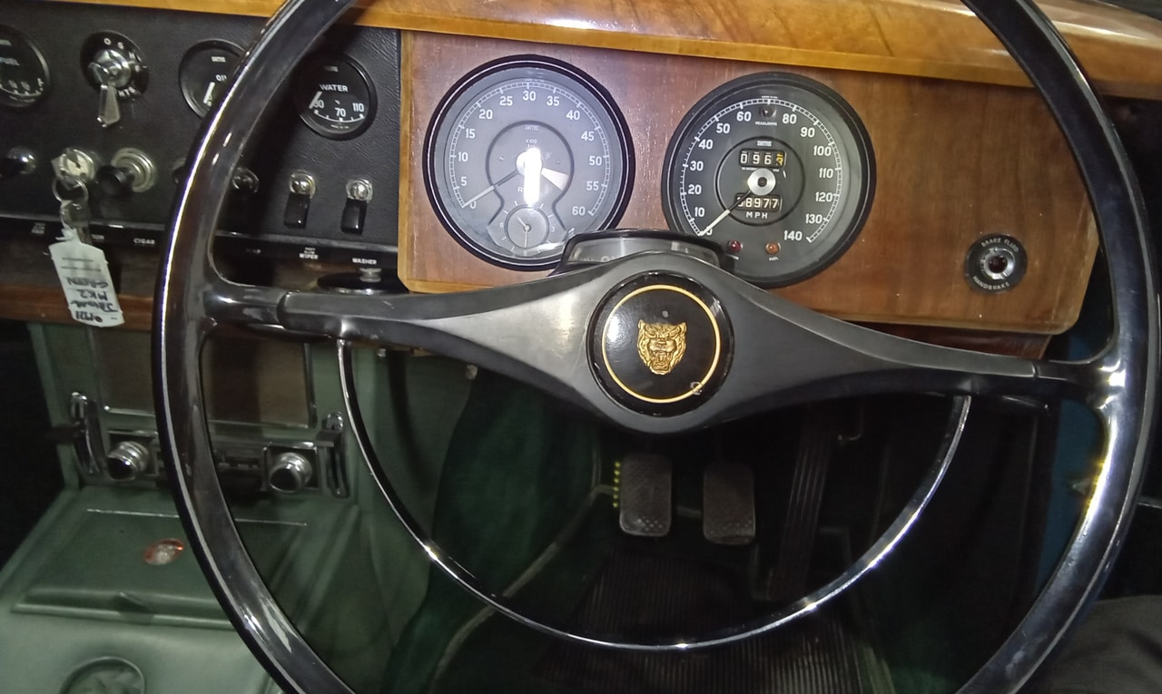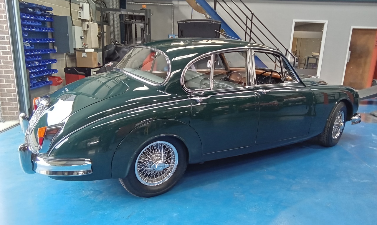 With our 1965 Jaguar Mk2 having been recently won by very lucky new owner Carl, the car was taken into the Bridge Classic Cars restoration workshop for our technician Jon to complete his final checks and repairs. This included centring the steering wheel and check all fluid levels as well as correct tyre pressures etc.