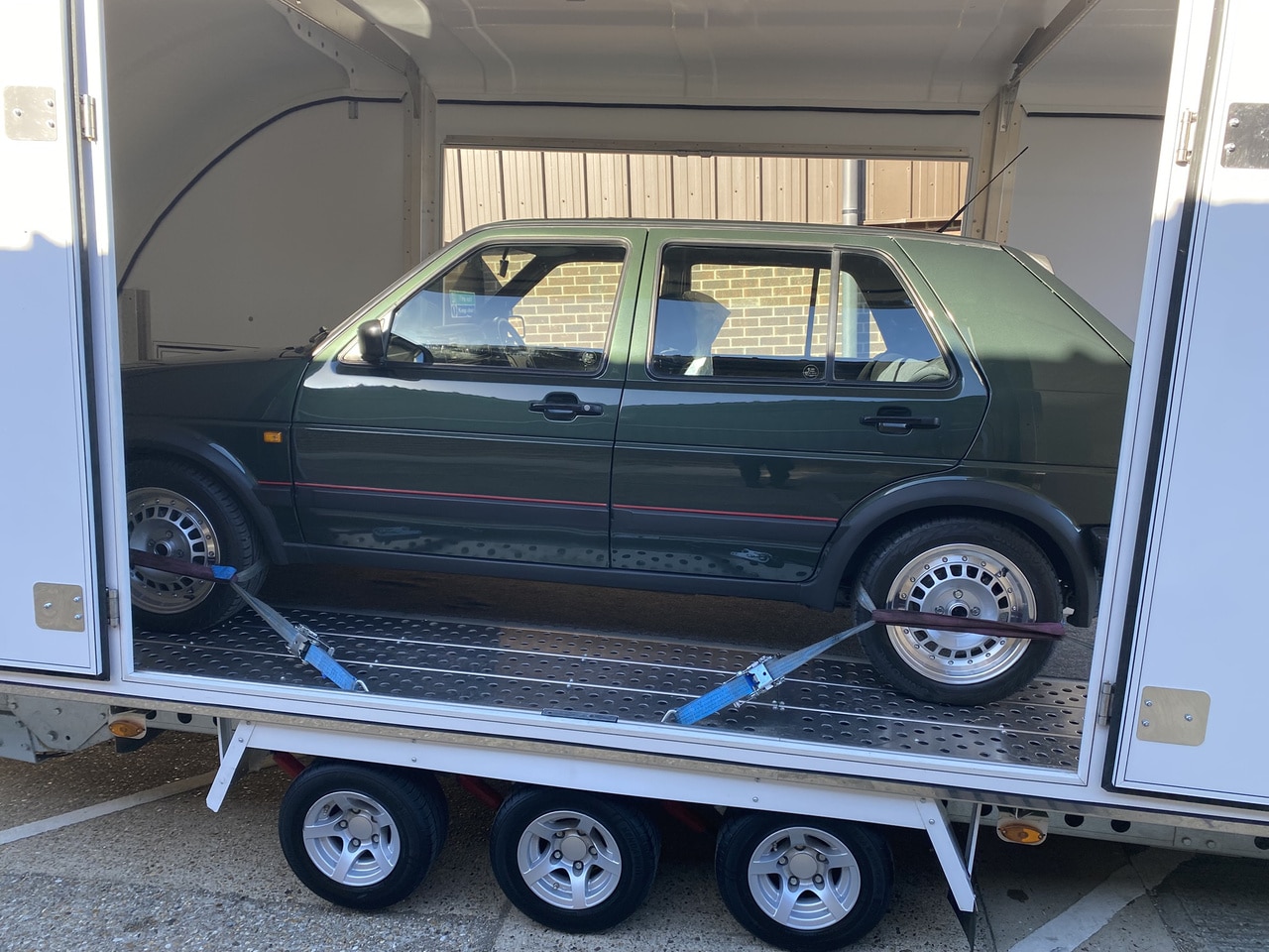 Our 1988 Volkswagen Golf GTi, which was recently won by our lucky winner Adam, has been loaded up by the Bridge Classic Cars team for the journey to its new home with its lucky new owner. We all here want to wish Adam many happy miles with his new Mk2 GTi.