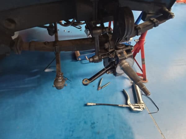 Workshop Manager, John has been rebuilding and refitting the front axle to our 1939 Jaguar SS100. He also checked and adjusted the tracking to make sure this rare car handles correctly when it gets back out on the road.