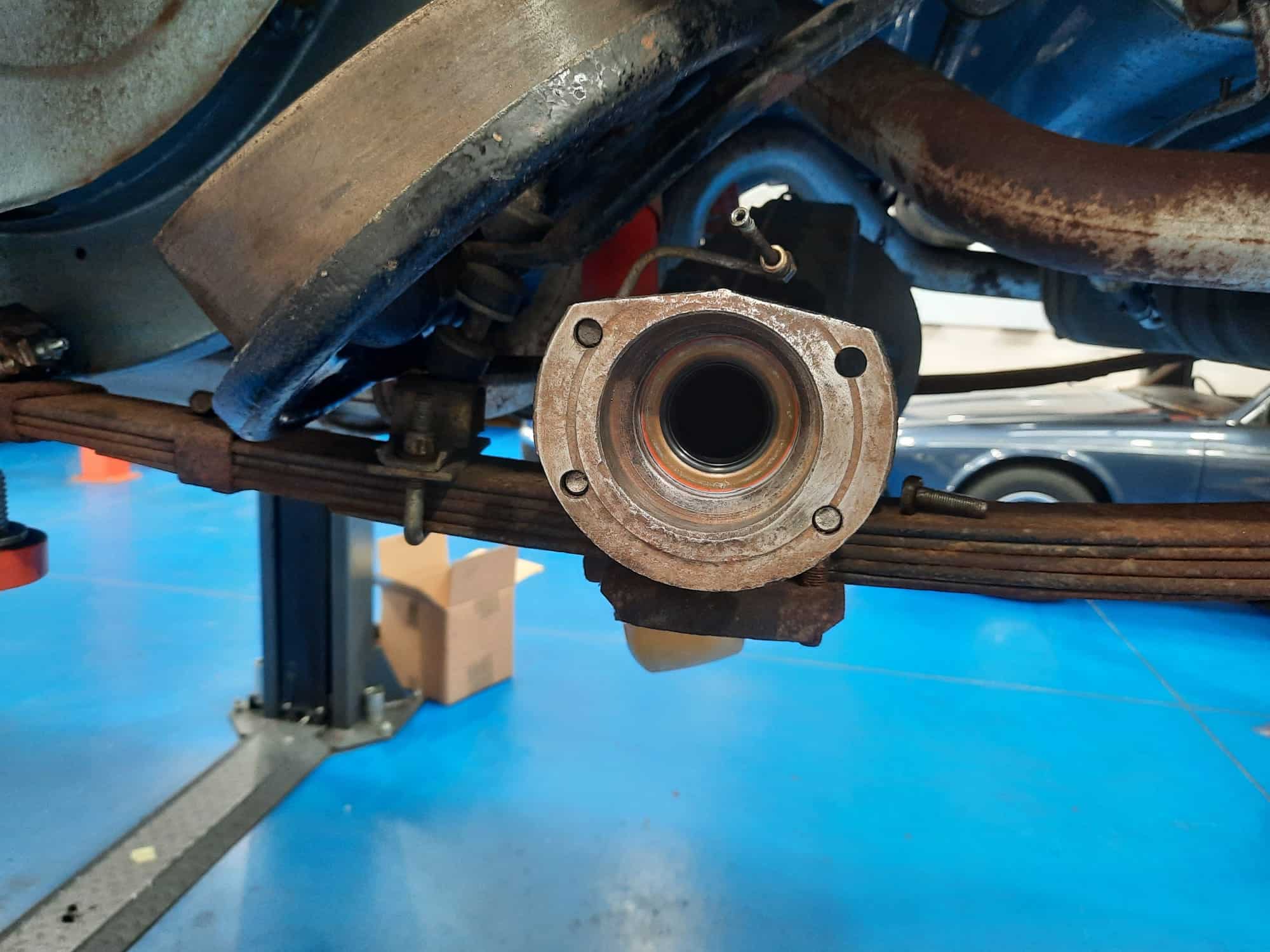 The car was assessed and inspected so that all the parts could be ordered in one go but first on the list is the rear axle seals and wheel cylinders. Mauro had noted down a small leak coming from the rear axle and while the rear drums have to be removed for the axles to come out, we thought it best practice to service the rear brakes. In all, their condition was fine. The shoes had plenty of material and all the hardware looked straight and in good order.
