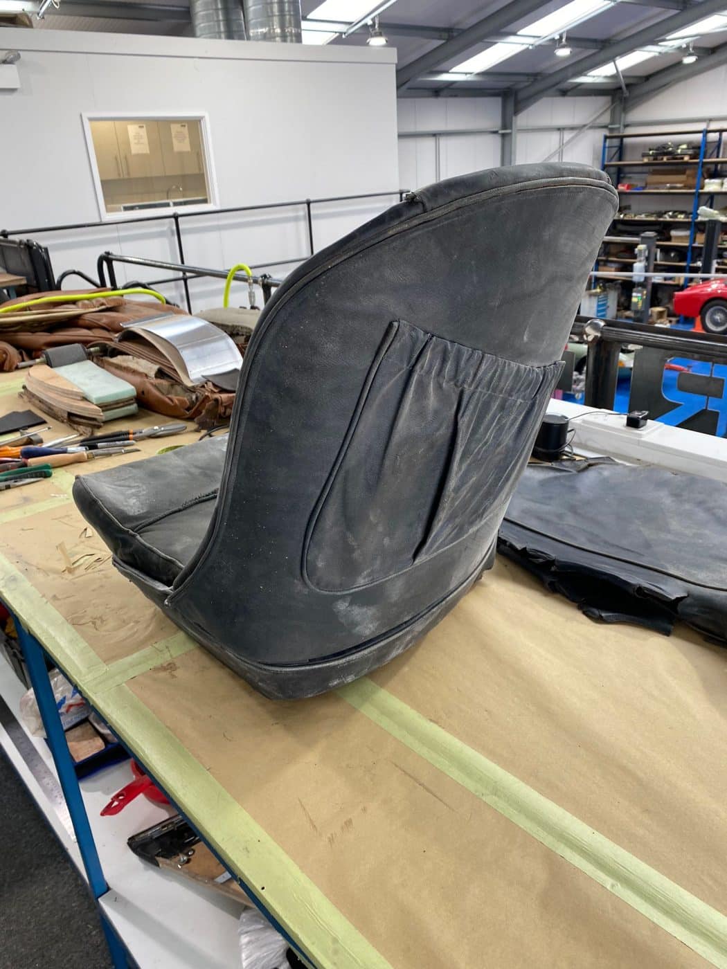 The trim team have begun the interior side of restoring the 1958 Jensen 541R. The first stage is to strip back the fibreglass bucket seats and rear panels.