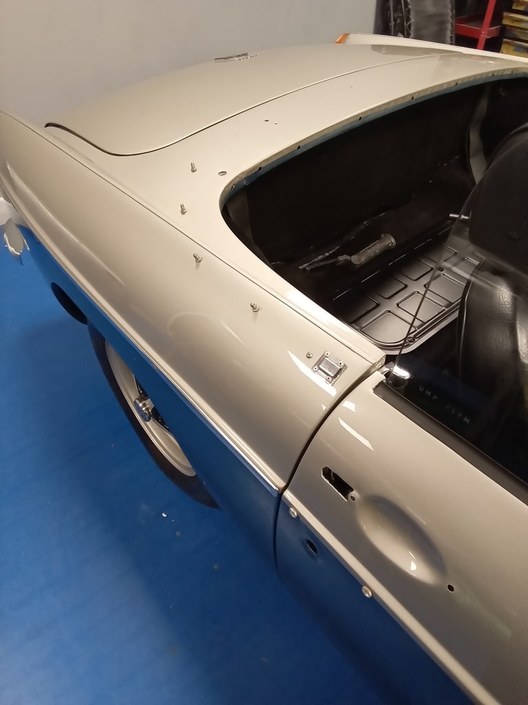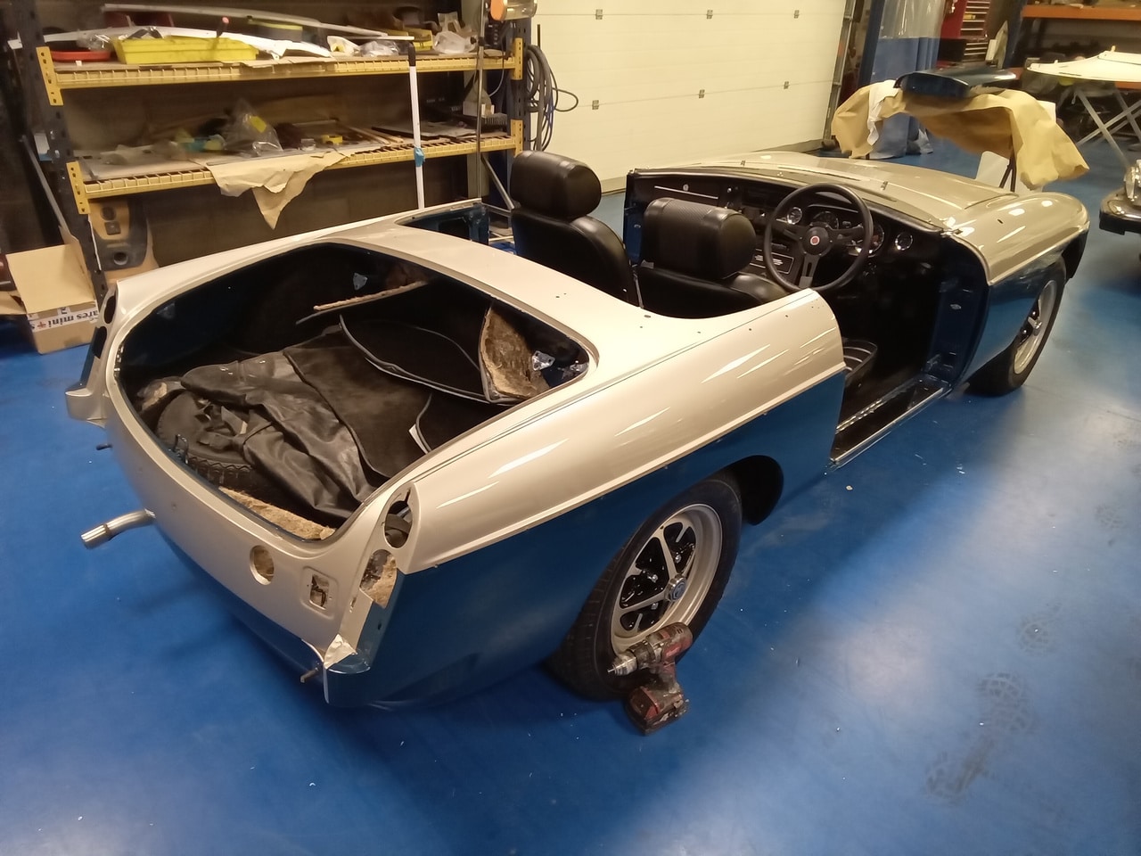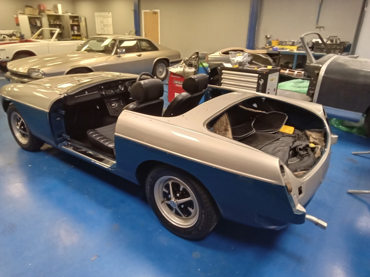 Our paint and body team have been working on stripping down the 1973 MGB Roadster. The car was won recently by Stephen but after living with the car for a little while, you offered the car back us. With that, the team have made the decision to reverse the cars two-tone paint job.