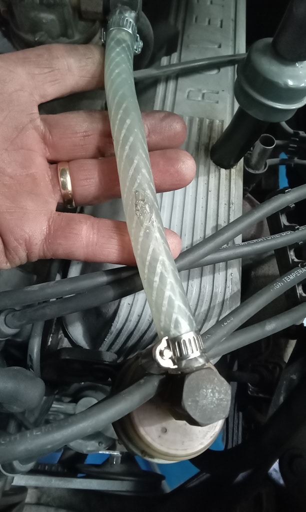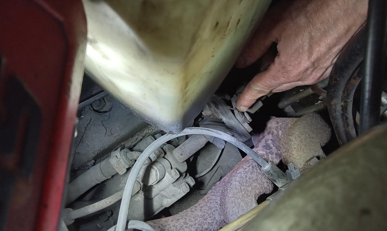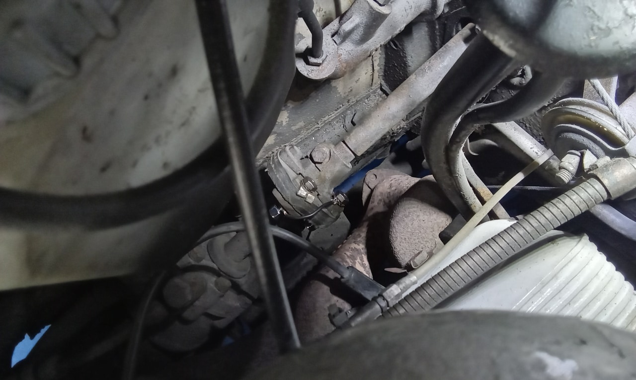 ‘Make earth wire for steering column rubber joint and connect across rub er. Horn still not working. Investigate horn units. Clean connections and test with power probe. 1 horn shorted inside a d not working. Other horn works fine. Reconnect and test, ok. Replace fuel hose from filter to carbs. Tighten connection to nearside front sidelight and test.‘