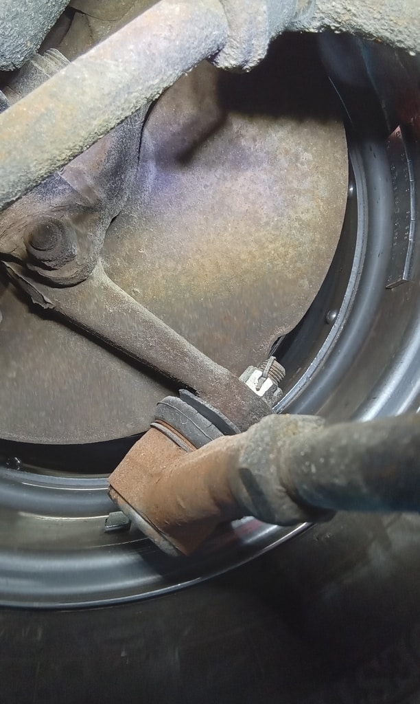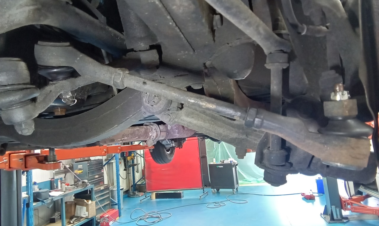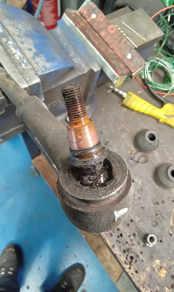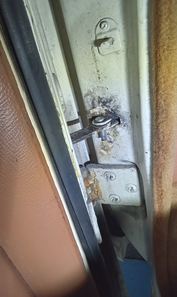 ‘Clean and find new clevis pins for both rear door check starts. Fit and lube. Test and fit split pins to secure. Fit screw to rear number plate. Fit screw to offside chrome sill trim. Secure rear exhaust mount with new nut. Remove nearside track rod. Strip and clean. Regrease both ball joi ts and fit new ball joint rubbers. Secure with lockwire. Refit track rod and secure. Fit new split pins. Clean and lube drivers seatbelt. Work in and out several times and retracts better now. Get wipers working by moving contacts/wiring. Washers working OK.’