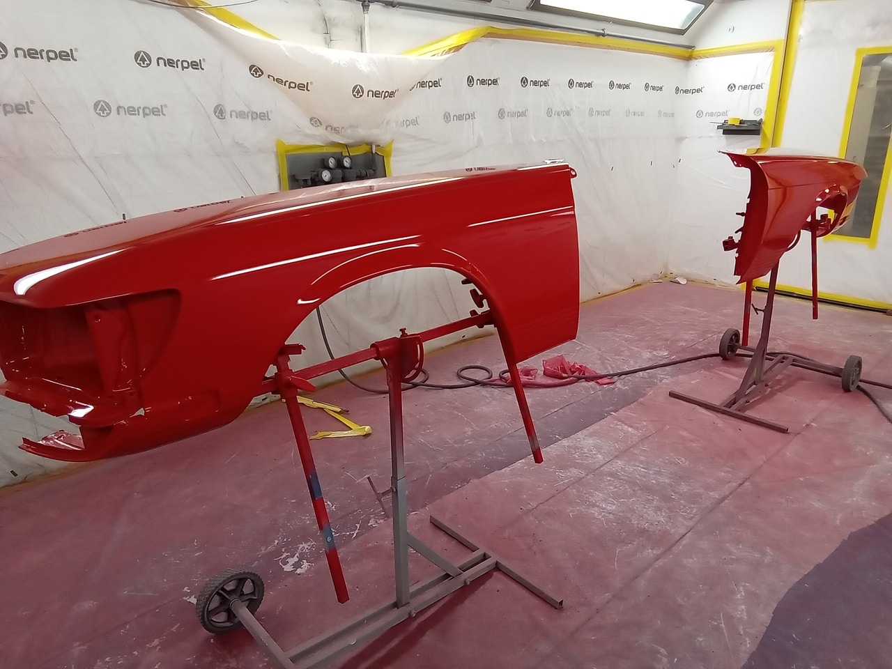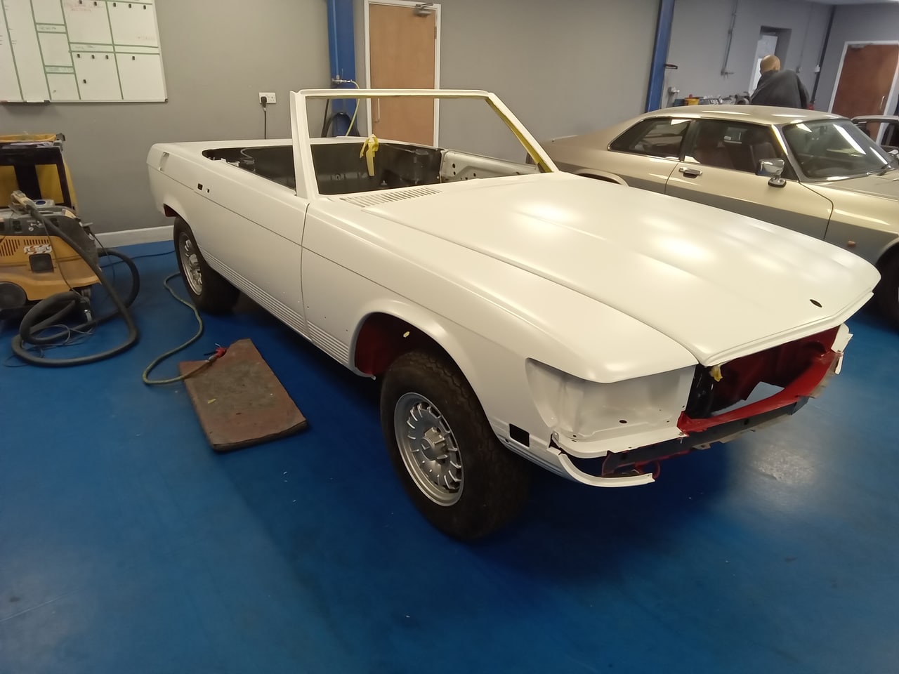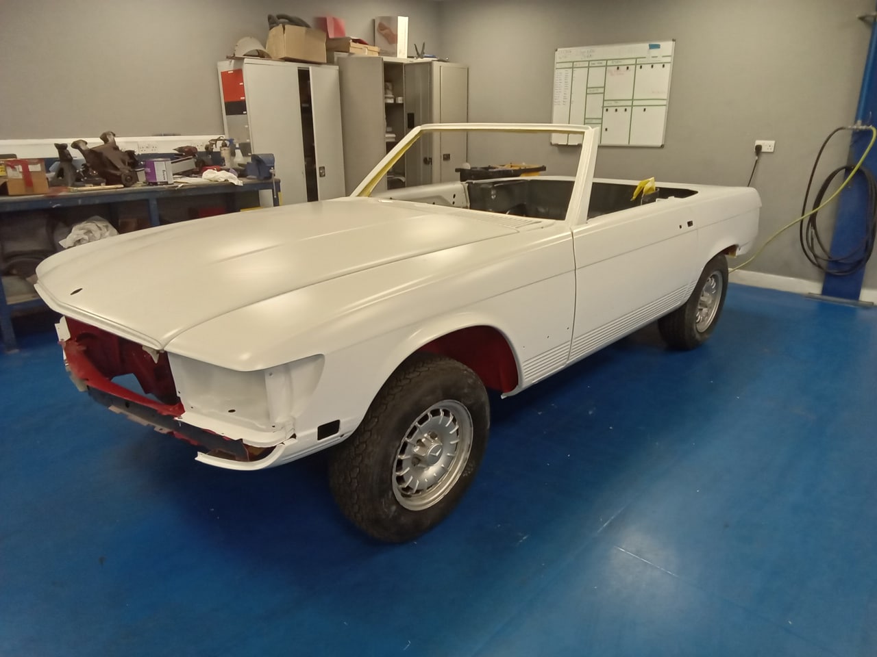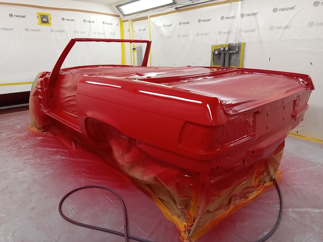 The body shell, all acompanying panels, trims and parts have all been painted for the freshly restored Mercedes R107 and they all look absolutely phenomenal.