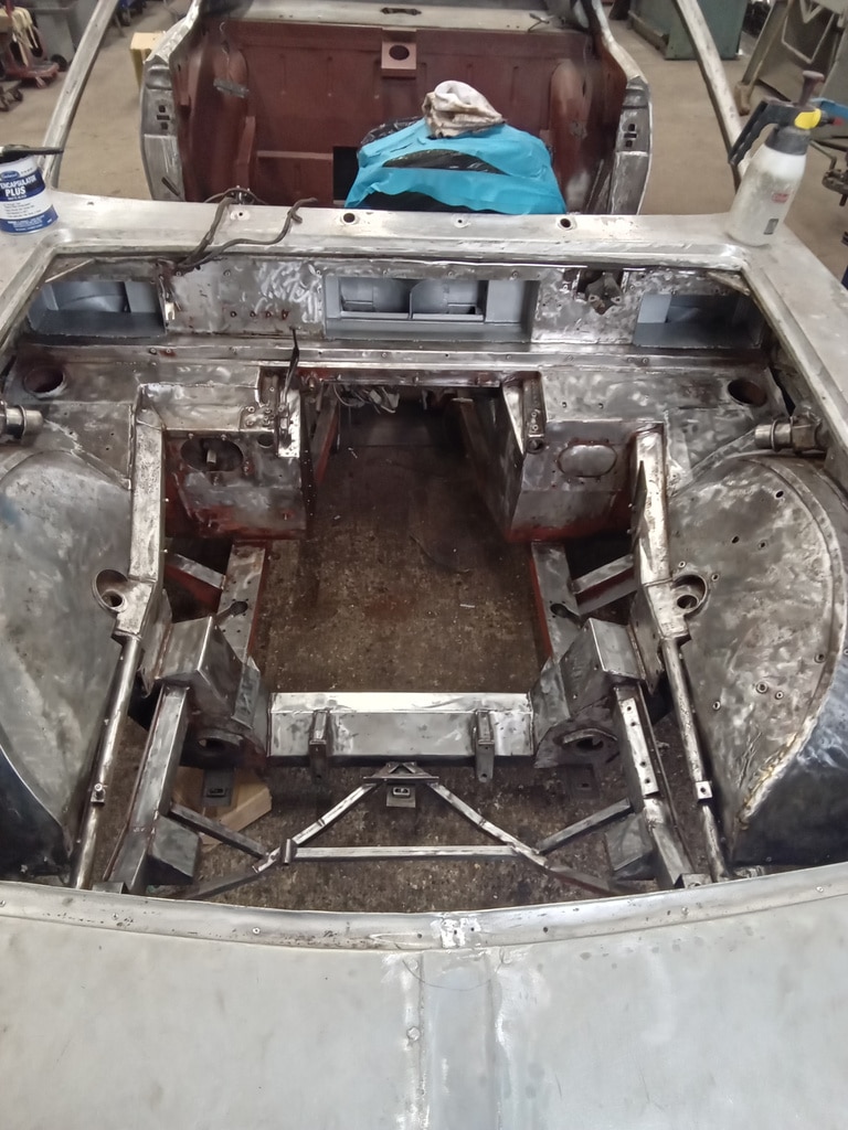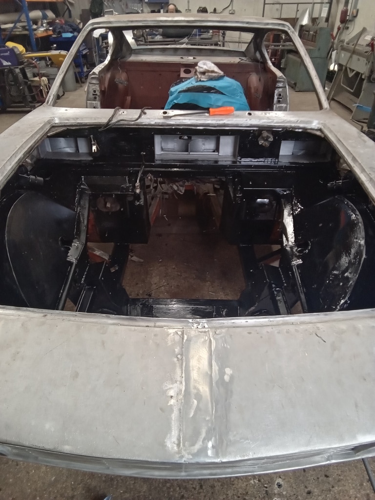 Our fabricator Greg, who’s been working on the metal work of our 1970 Aston Martin DBS, has been working in the engine bay of the ultra-rare classic GT car. With so much work done by Greg to sort out the metal work of the car, that the team have been applying rust encapsulator throughout the car but this time specifically in the cars engine bay before it heads to the paint and body team.
