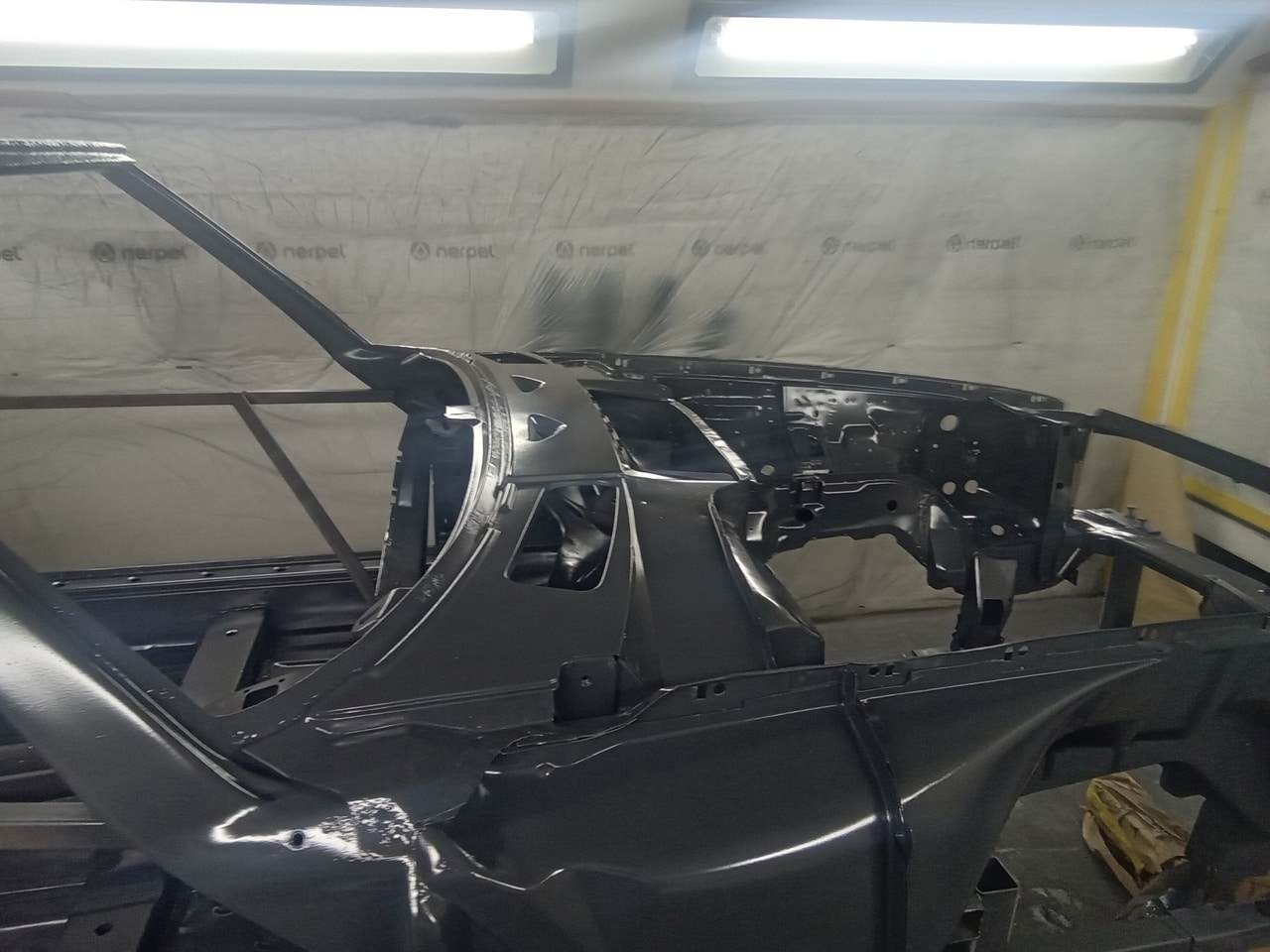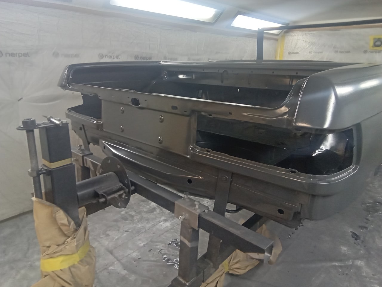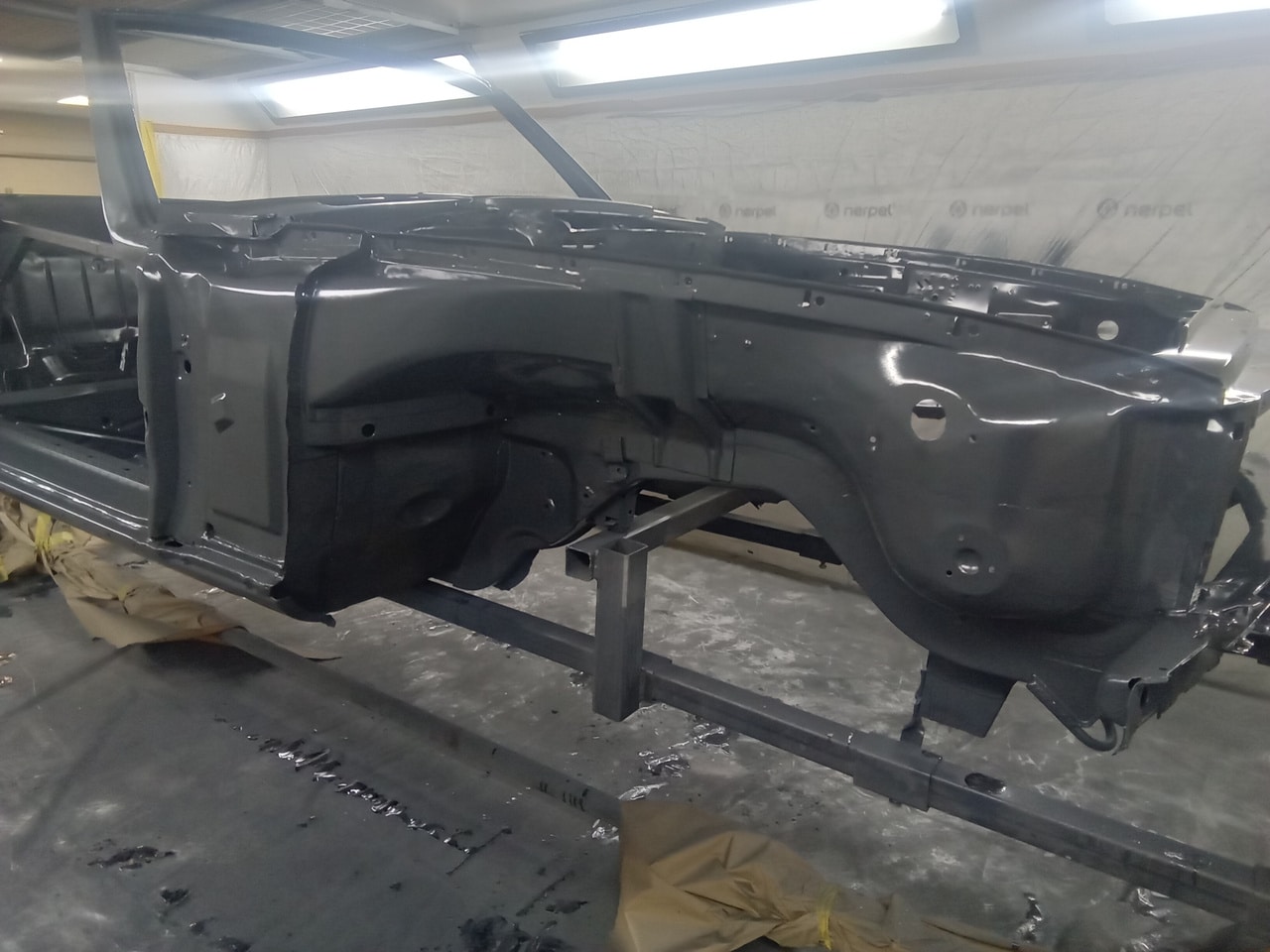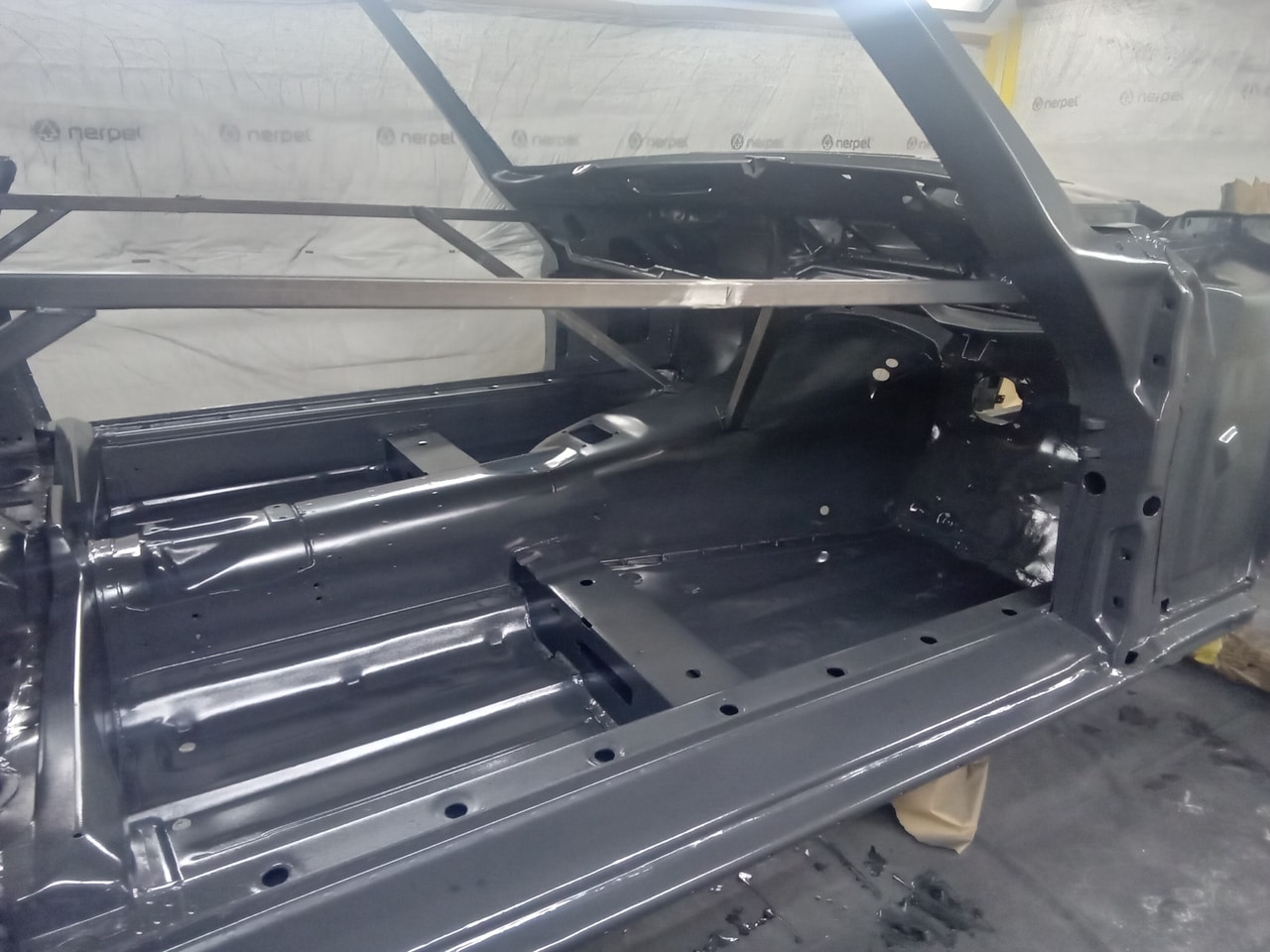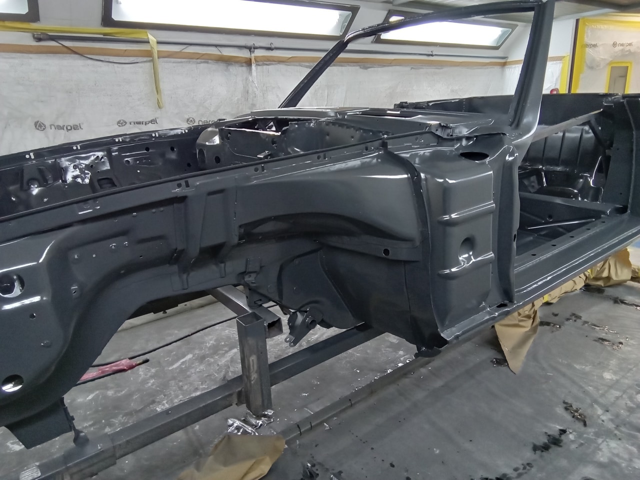 The paint and body team have taken the freshly restored and improved bodyshell of the 1978 Mercedes 350SL. In the paint and bodyshop here at the Bridge Classic Cars restoration workshops has been moved into our in-house paint booth for the team to completely and totally clean down, then clean it again and then clean it once more before laying down several coats of epoxy for the team to then begin refining its shape even more aiming towards possibly the finest Mercedes R107 to have been restored.