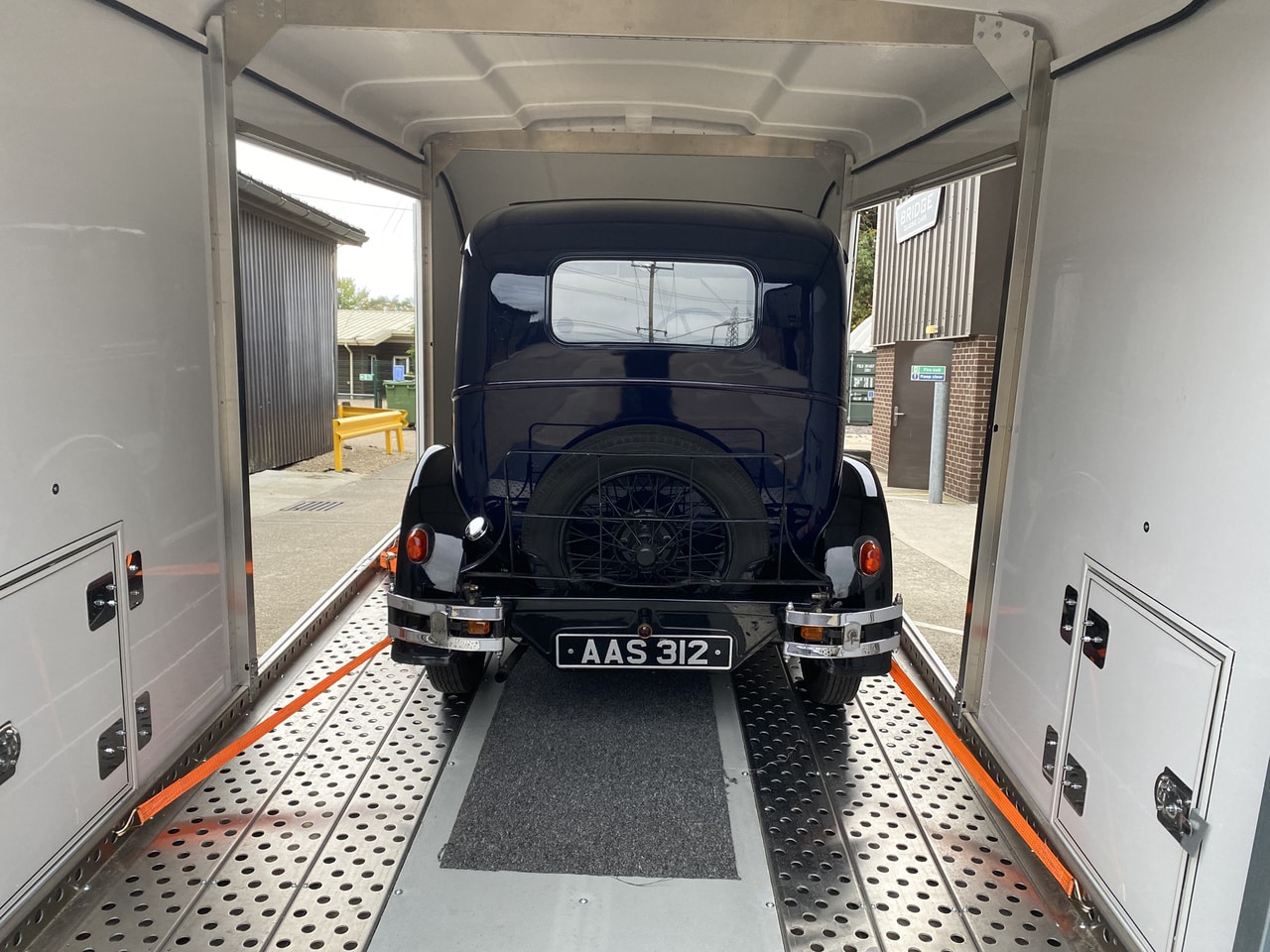 With its final checks and repairs completed by the Bridge Classic Cars restoration team, it was handed over to our transport logisitics team to get the pre-war saloon loaded into our enclosed trailer and delivered to its very excited new winner Keith this morning.
