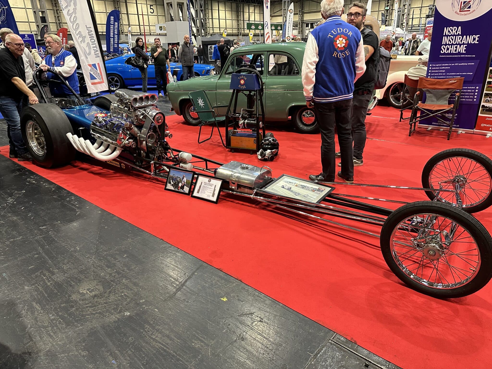 The Tudor Rose Dragster was first built in 1967 by two men called Dennis Priddle and Rex Sluggett. They put in a big, powerful engine known as a Keith Black 426 Hemi. This type of engine was made to go extremely fast!