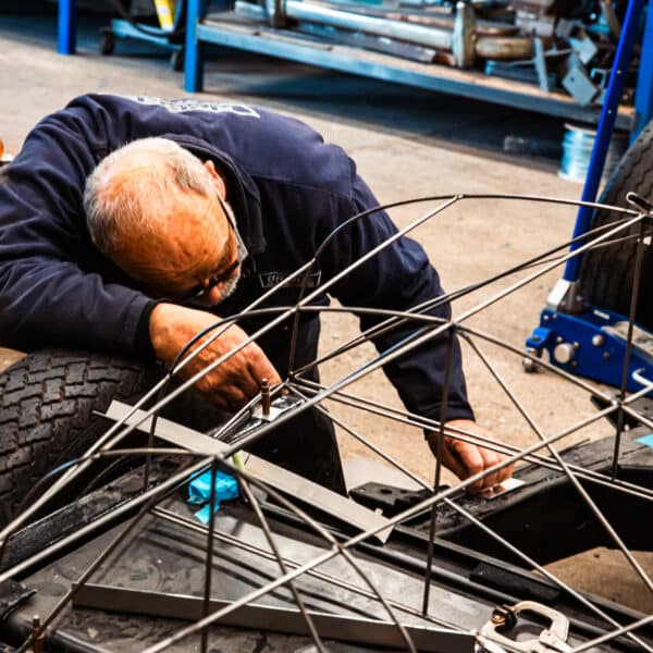 Each individual piece of the birdcage is shaped and welded into place, referencing some of the most beautiful pre-war racecars such as the gorgeous Alfa Romeo 8C Monza etc, to create the final look of the XK120’B’.