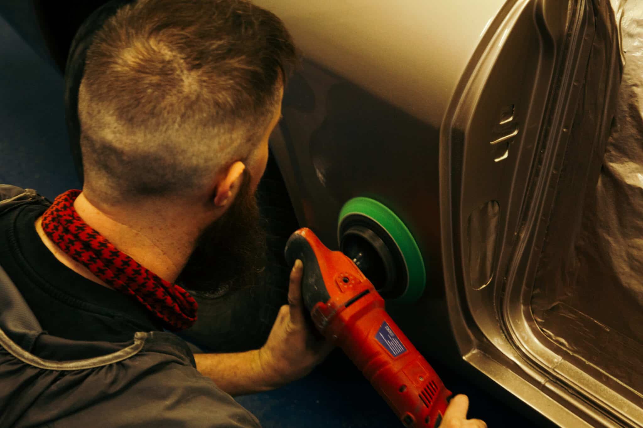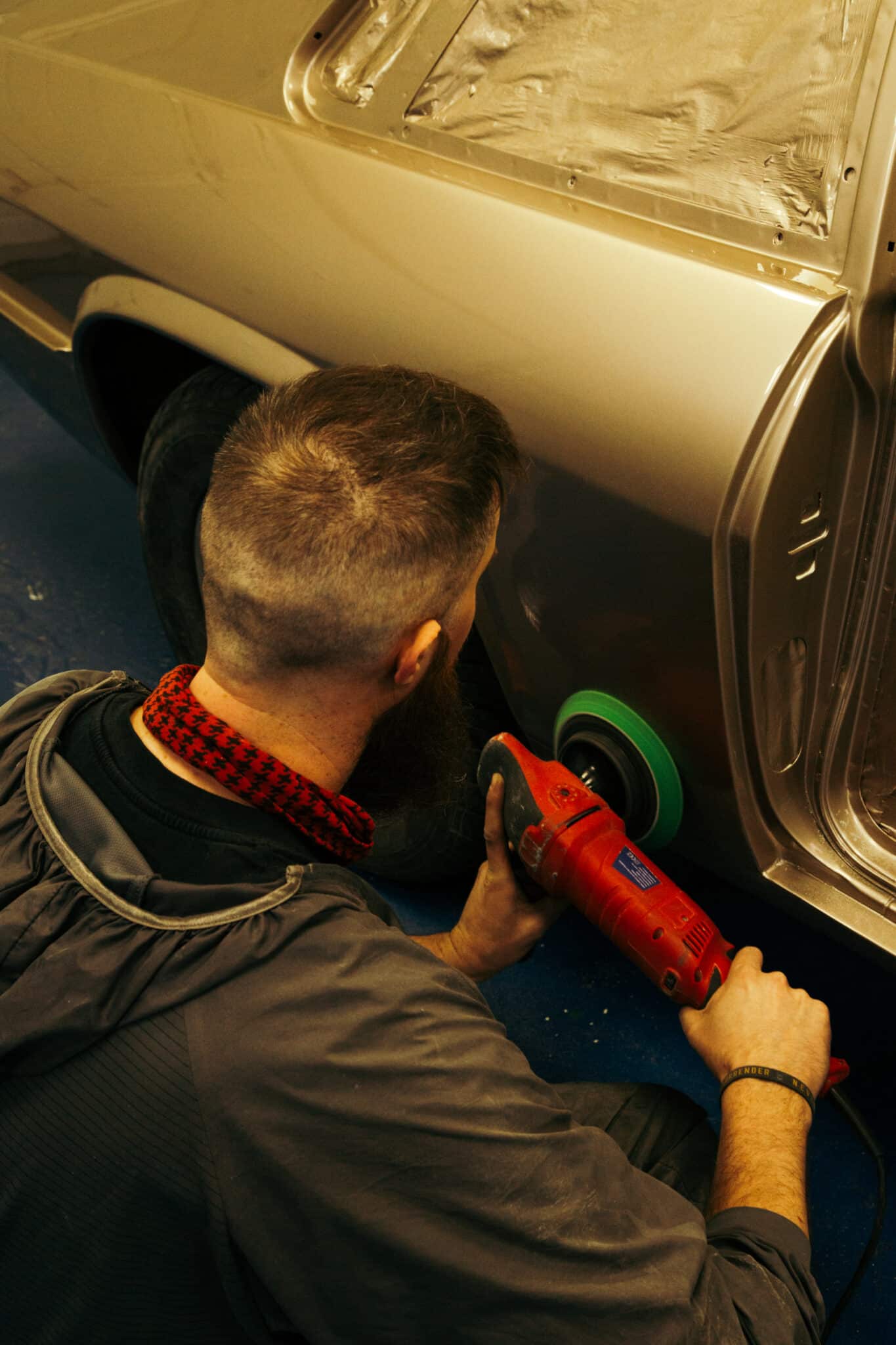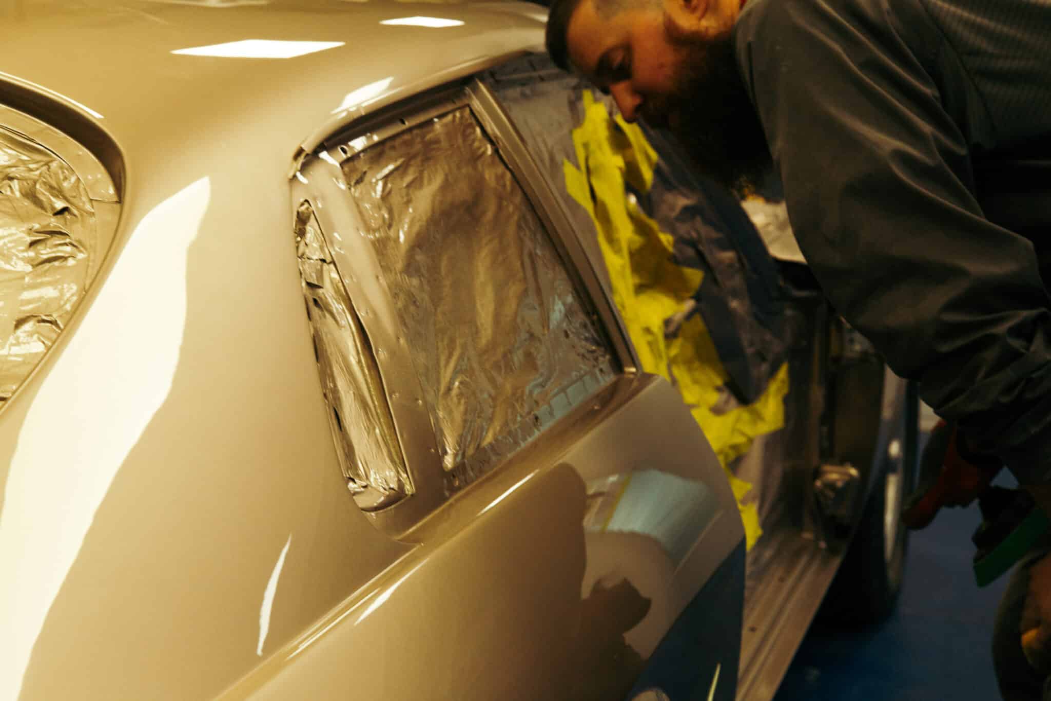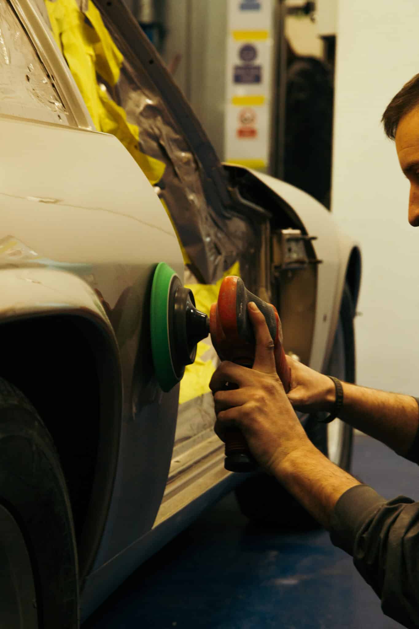 Once the car had come out of the booth here at the Bridge Classic Cars HQ and the clear coat cured, Adam could begin the process of flattening back and then polishing the car to an absolute mirror finish.