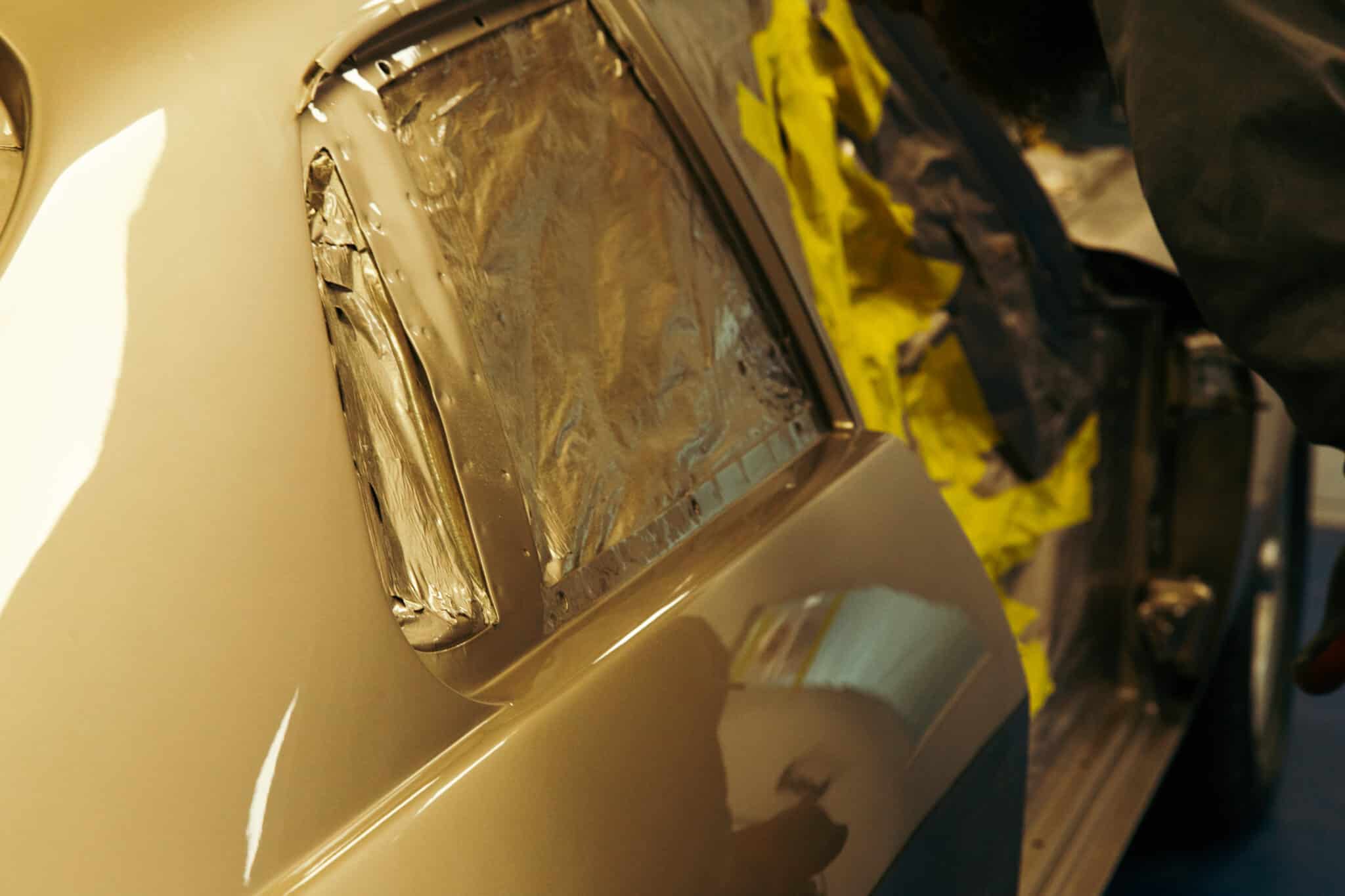 With the 1991 Jaguar XJS now looking glorious in its fresh gold paintwork, just before the car headed into the paint booth our fabricator Greg has a few last jobs to do – one of which was to remove a snapped bolt in the door of the classic GT car. Once repaired, Adam could begin to lay down the XJS’s new look.