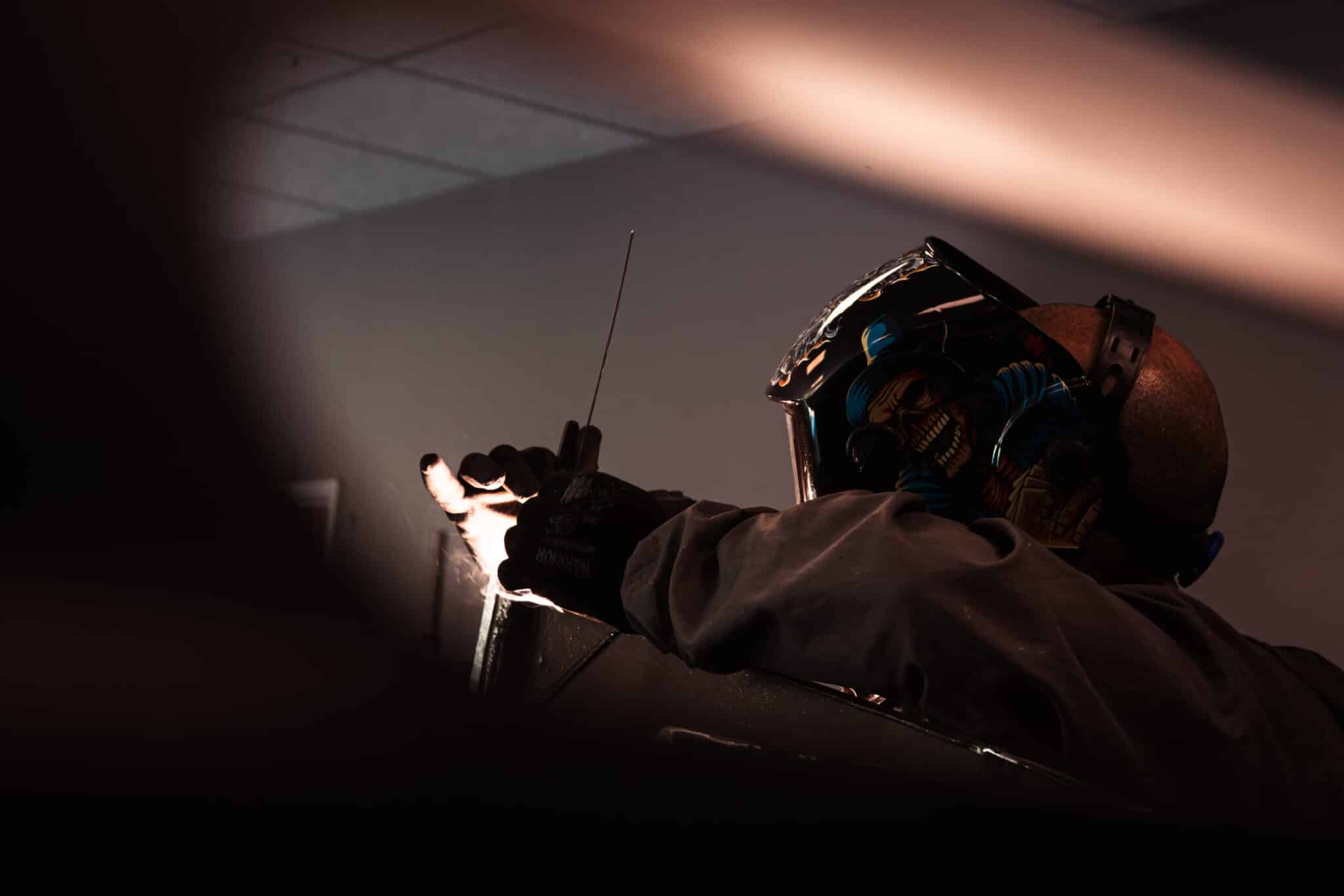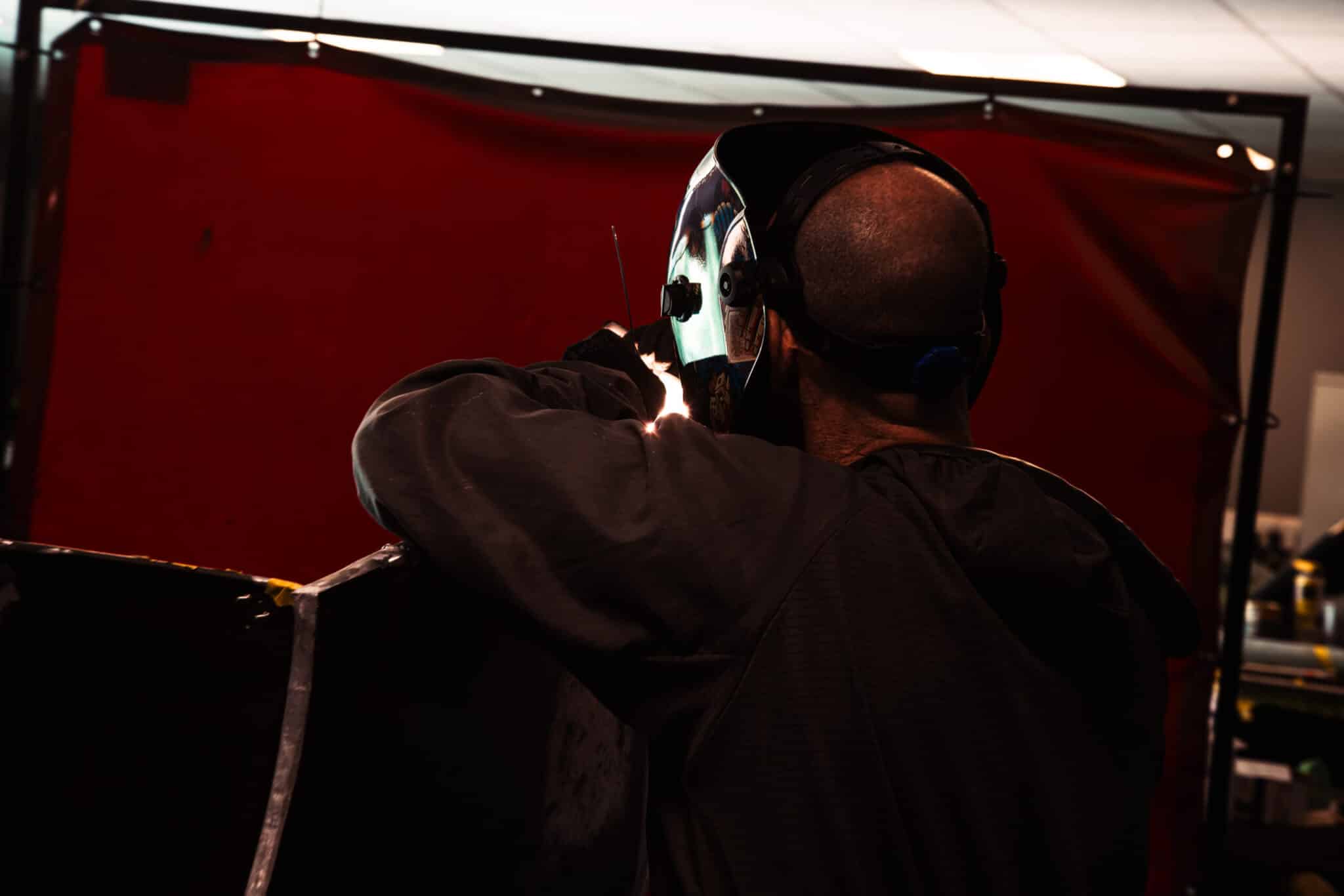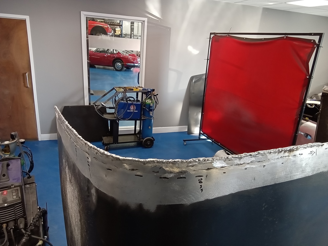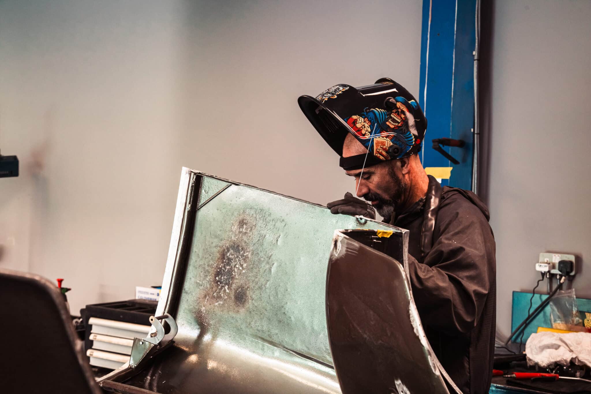 Welding the bonnet on the 1955 Aston Martin DB2/4 Drophead Coupe