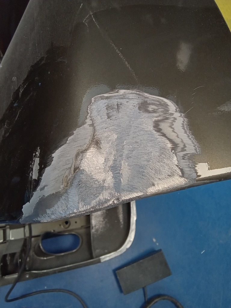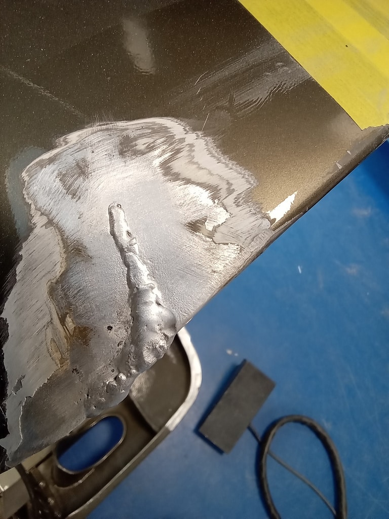 Our paint and body technician Mauro has been TIG welding on the bonnet of the 1955 Aston Martin DB2/4 Drophead Coupe. As Maura has been gapping the panels on the ultra-rare Aston Martin here at the Bridge Classic Cars HQ, he has had to repair several areas of the aluminium work very carefully in order to put enough material in place for the team to begin reshaping and correcting it.