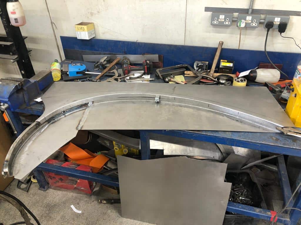 James has been continuing with the bodywork of the 1951 Riley RMB that is in at Bridge Classic Cars for restoration. Our in-house fabrication team have had the rear wing of the Riley on the workbench to carry on with replacing the areas that needed attention.