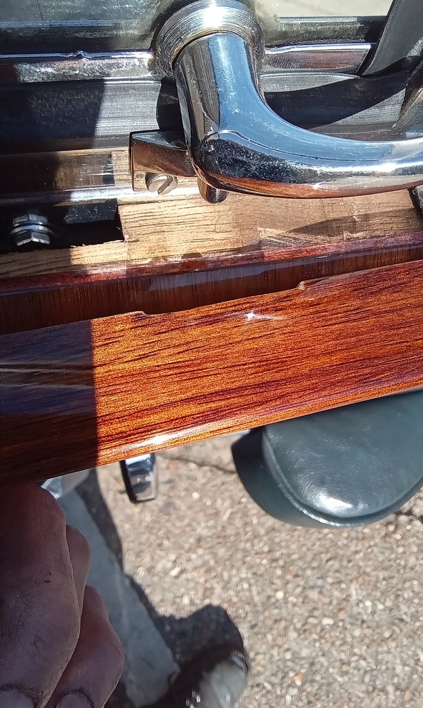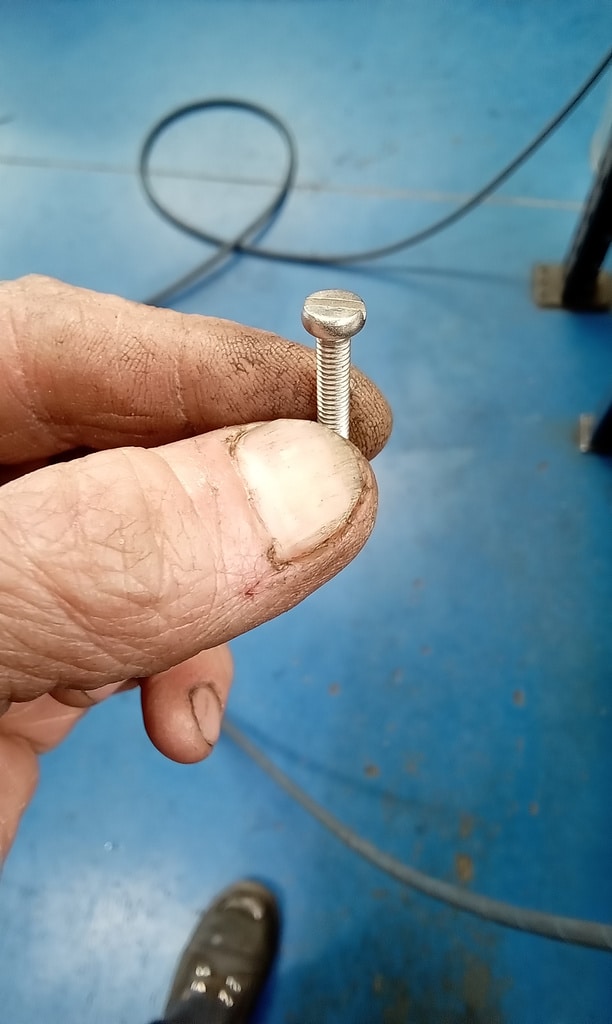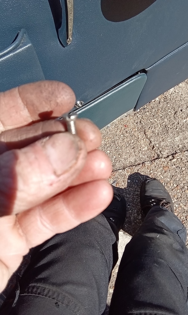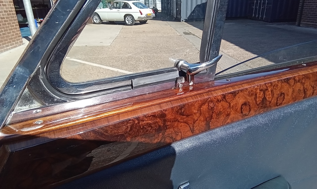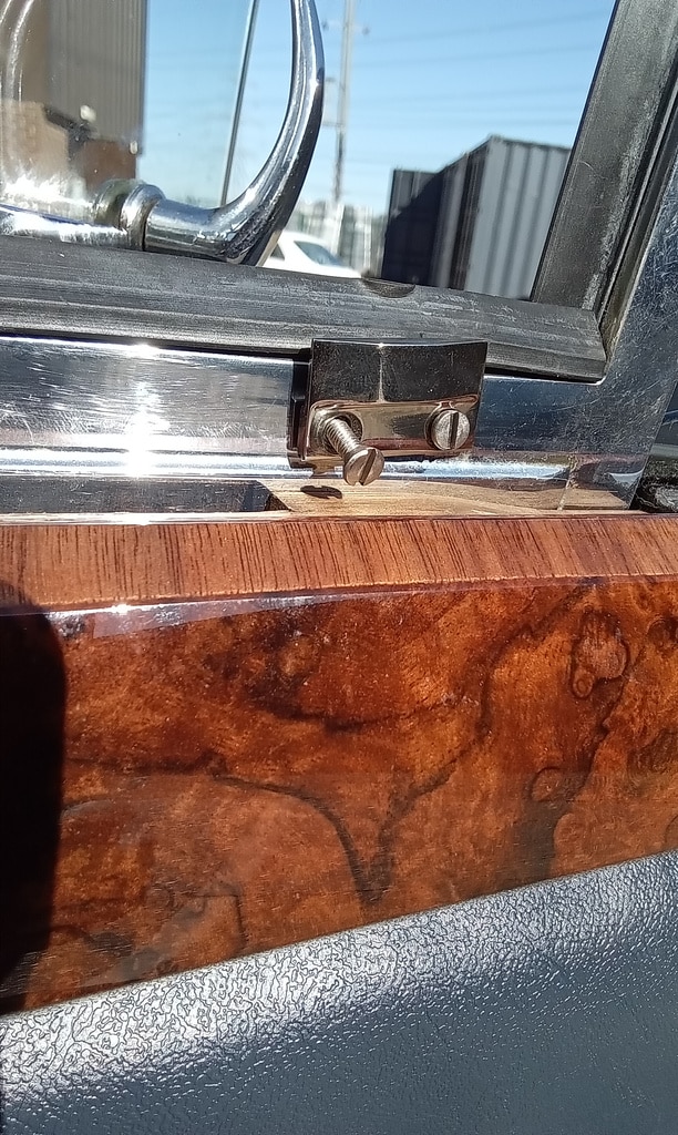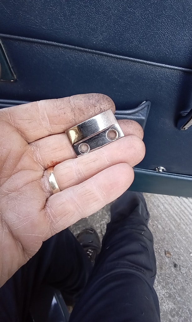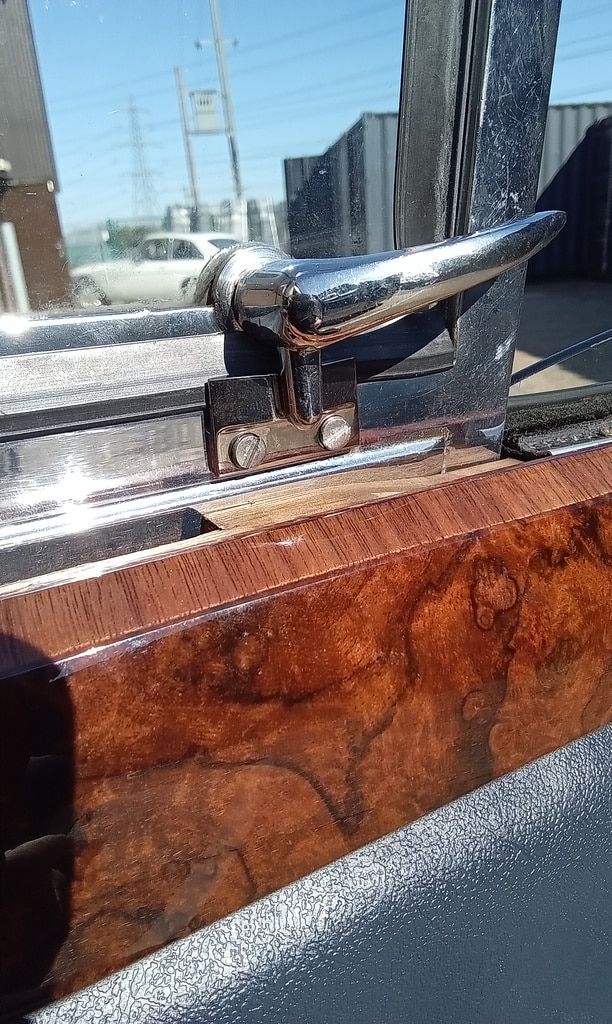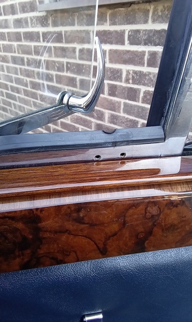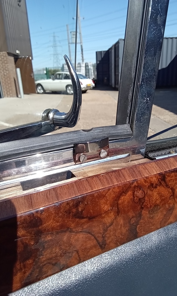 ‘Go and fit offside quarter window striker. Remove wood capping and find screws to fit. Put down screws and grind heads to countersunk shape. Fit and test. Notch out wood capping to fit around striker and refit. Test window ok.’