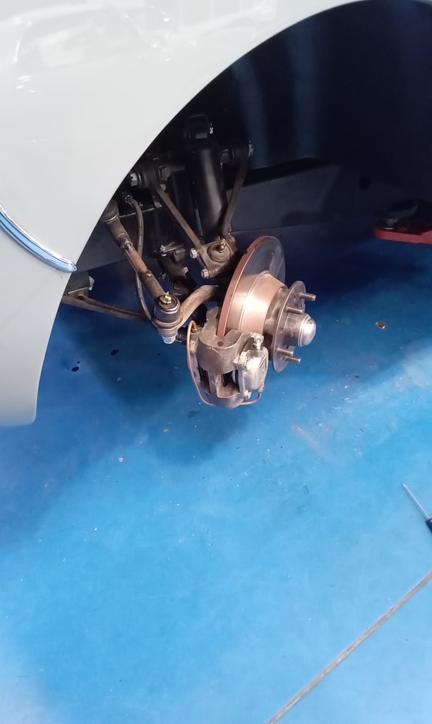 ‘Been road tested by John and i have a couple of things to look at. Check brakes and overdrive. Firstly remove all chrome rings from wheels and place in boot. Visually inspect braking system. Servo under car. Return spring been fitted to master cylinder. Brakes bled up fine yesterday.’
