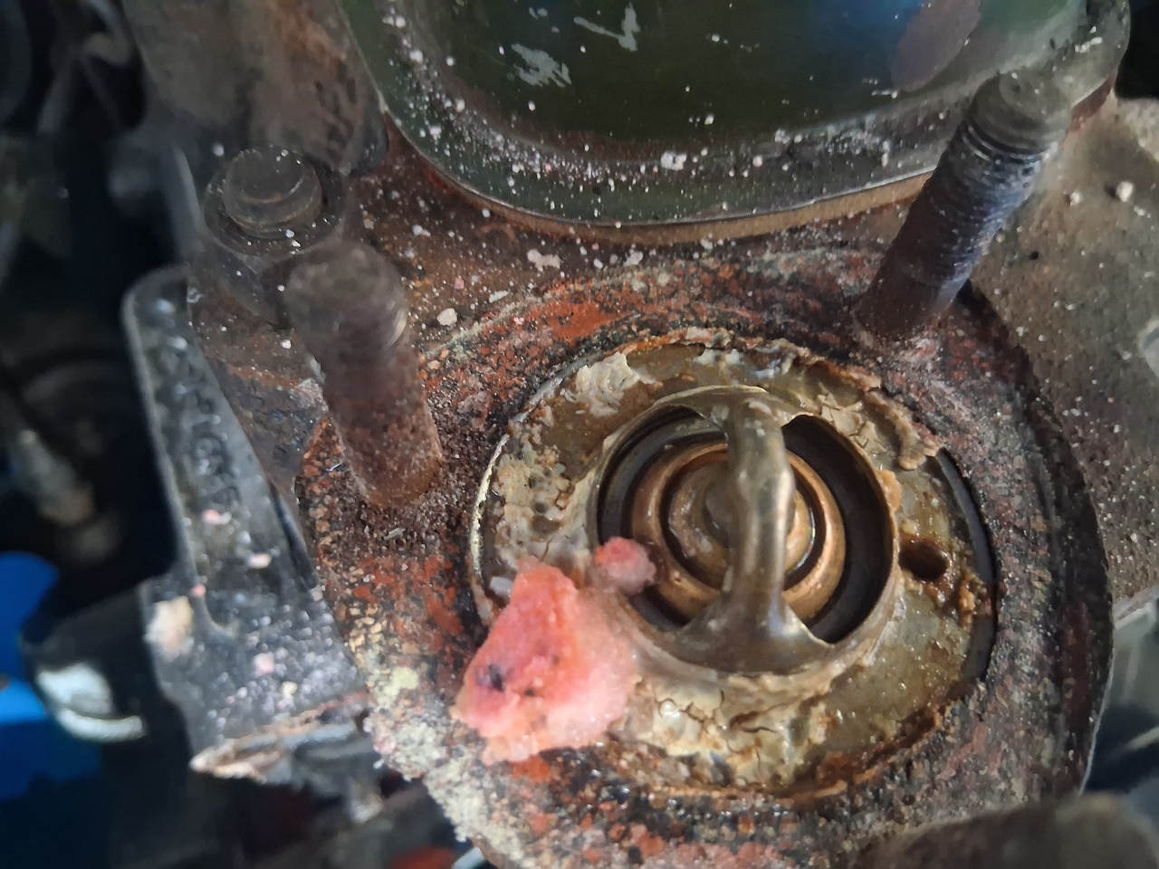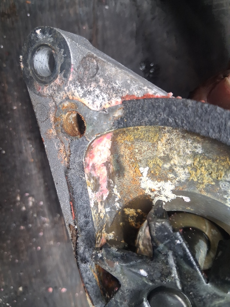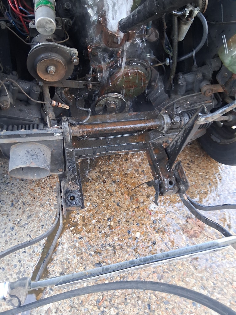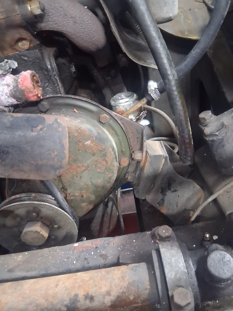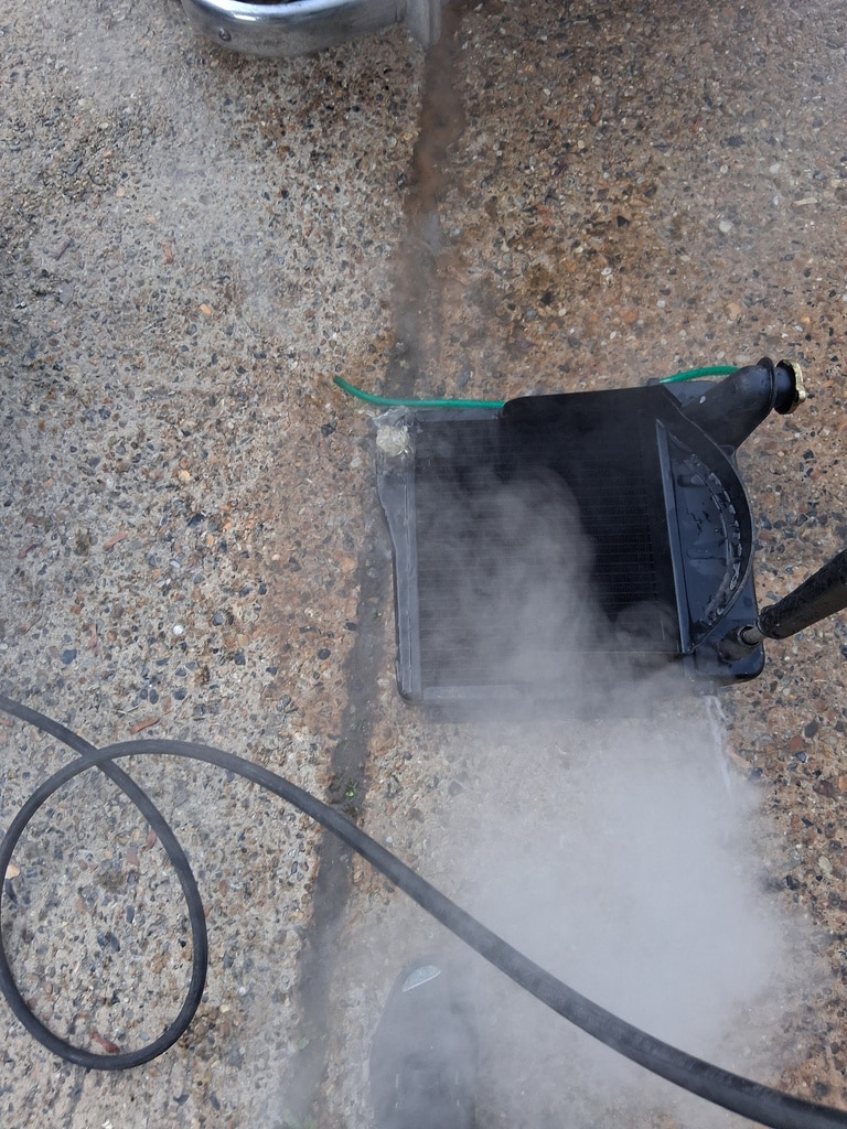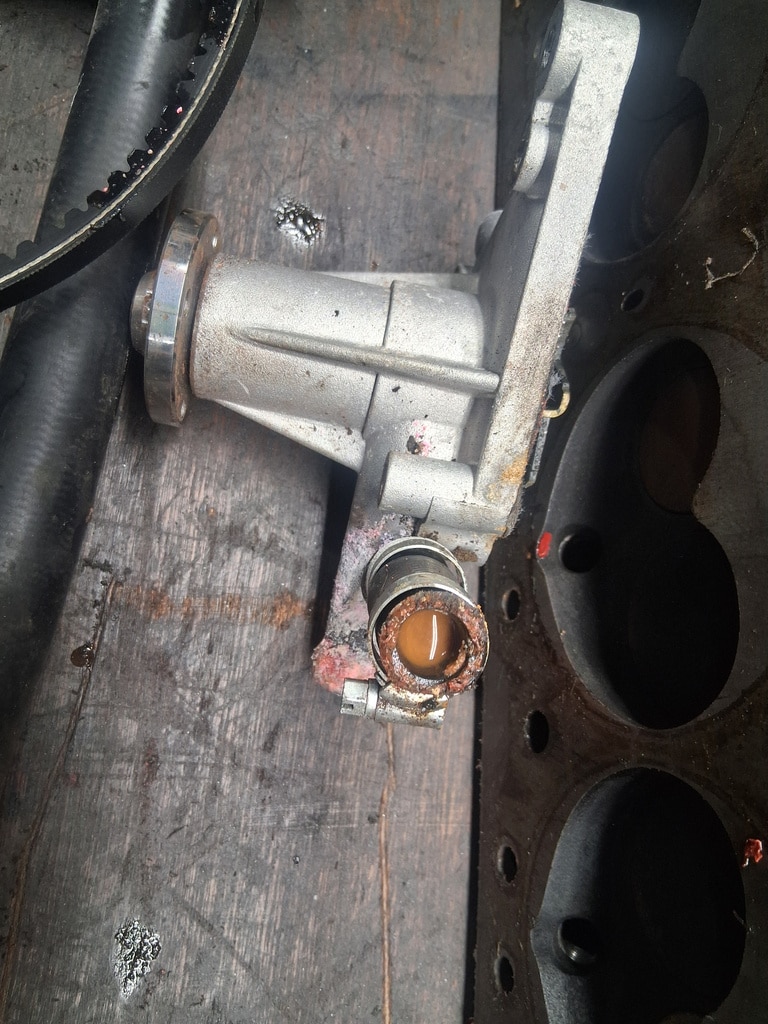 As part of removing the cylinder head, John removed the water pump and radiator from the car which gave him a chance to investigate further. On inspection, he found a blockage in the water pump and thermostat bypass of corrosion and debris which had also blocked up the radiator and heater radiator. These were all removed from the car and steam cleaned to remove any corrosion from the system.