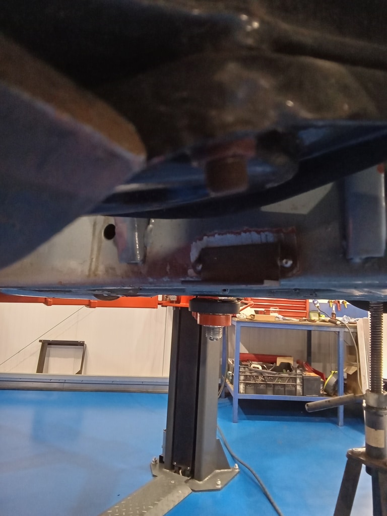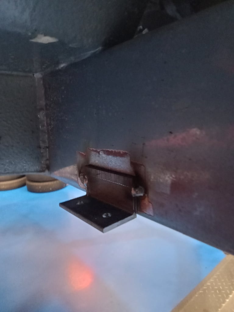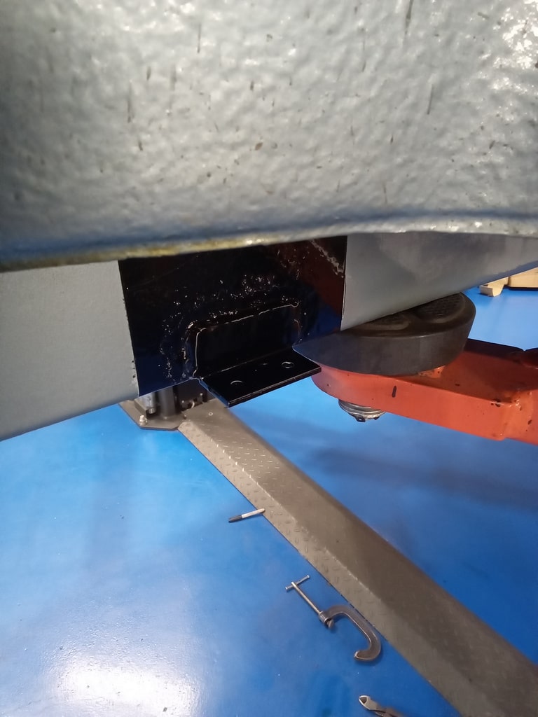 Once marked out, Rob could grind down the areas clean them up and weld the brackets in place. One in place, another trial fit to make sure then Rob could securely weld them into place before painting the area to protect the chassis from corrosion.