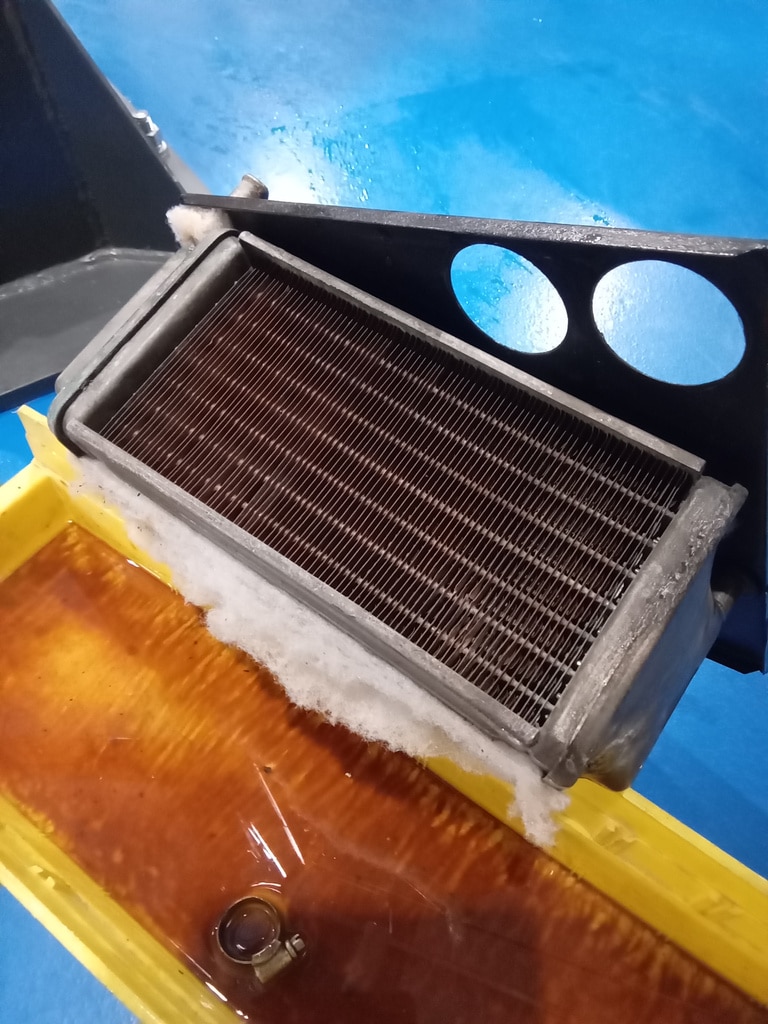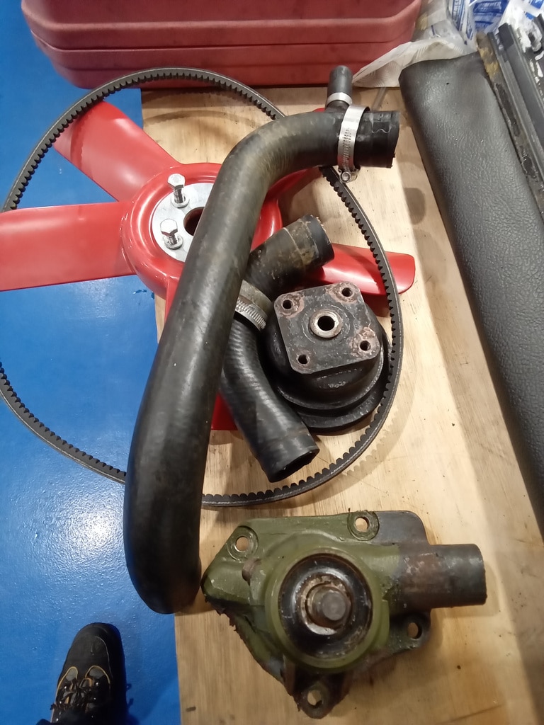 ‘Trip meter wheel sensor mounting bracket made and fitted. Sensor fitted and wired up. Heater box, radiator and water pump removed to repair leaks.’