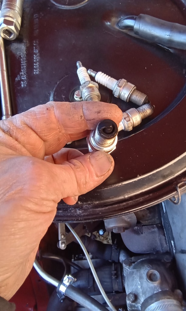 ”Look at running issue reported back to me. Remove spark plugs and clean. Regap and refit. Remove air filter and check carbs. Found front choke sticky and not sprung closed like it should when cold. Adjust choke mechanism and seems OK now. Pump throttle once and chokes now both on and start car. Runs fine on choke and fast idle. Leave for a few mins, revengune and chokes both disengage OK. Car sits and idles fine. Refit air filter. Check hot start all ok. Ready to go.”