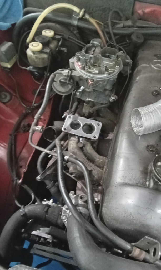 ‘Attend ”to air leak on front carb. Remove carb from manifold. Tighten base plate screws and e3fit. Make all connections and test. Run up outside. Fuel leak from return valve. Remove valve and strip. Diaphragm gone hard but clean out, rebuild and refit. Still weeps under acceleration. Pla e rag around it while I set ignition timing. Run up, seems OK except for under heavy acceleration. Disconnect link rod. Rear carb seems to stumble when revved. Front carb seems OK set idle vacuum control rod. Leave other settings until fuel leak cured.”