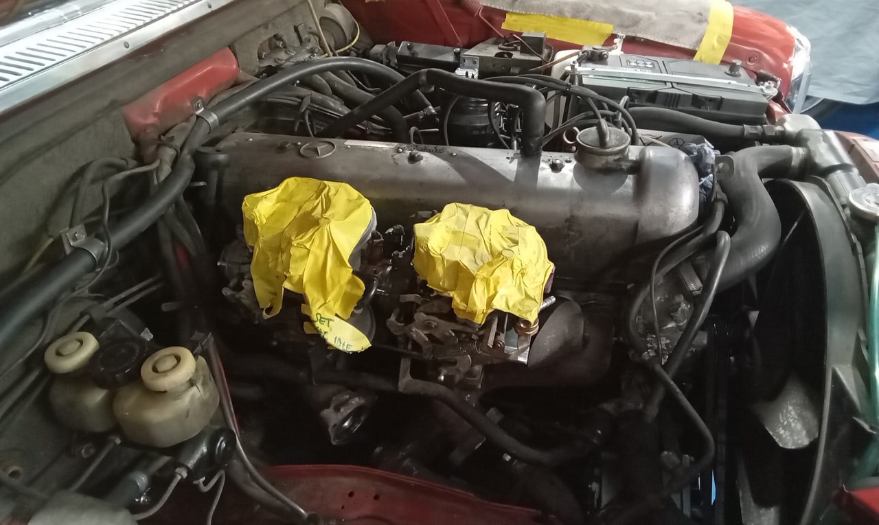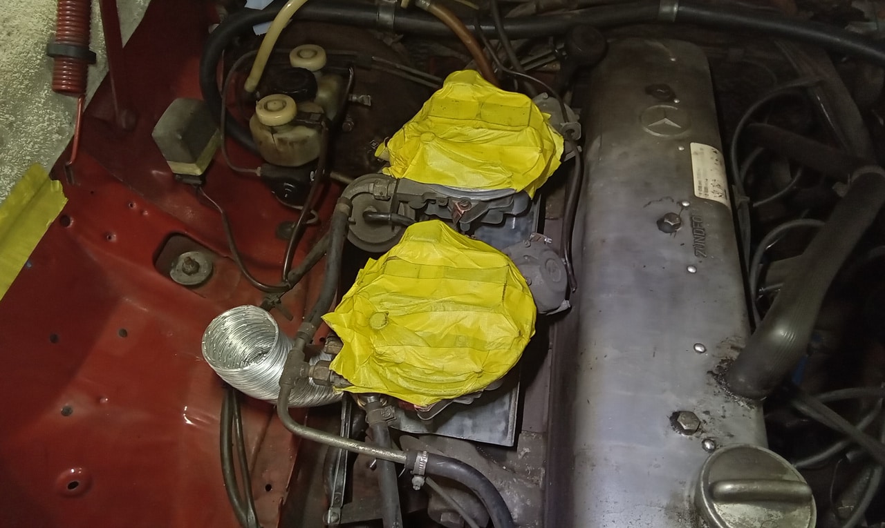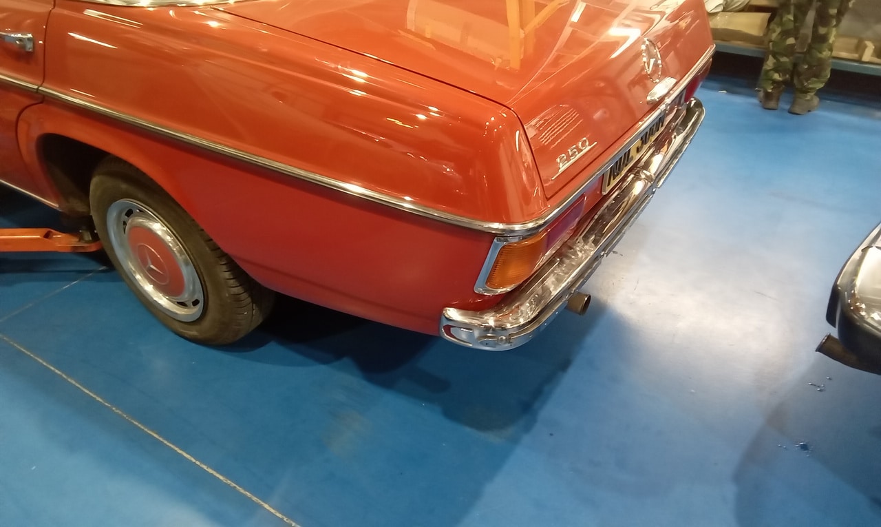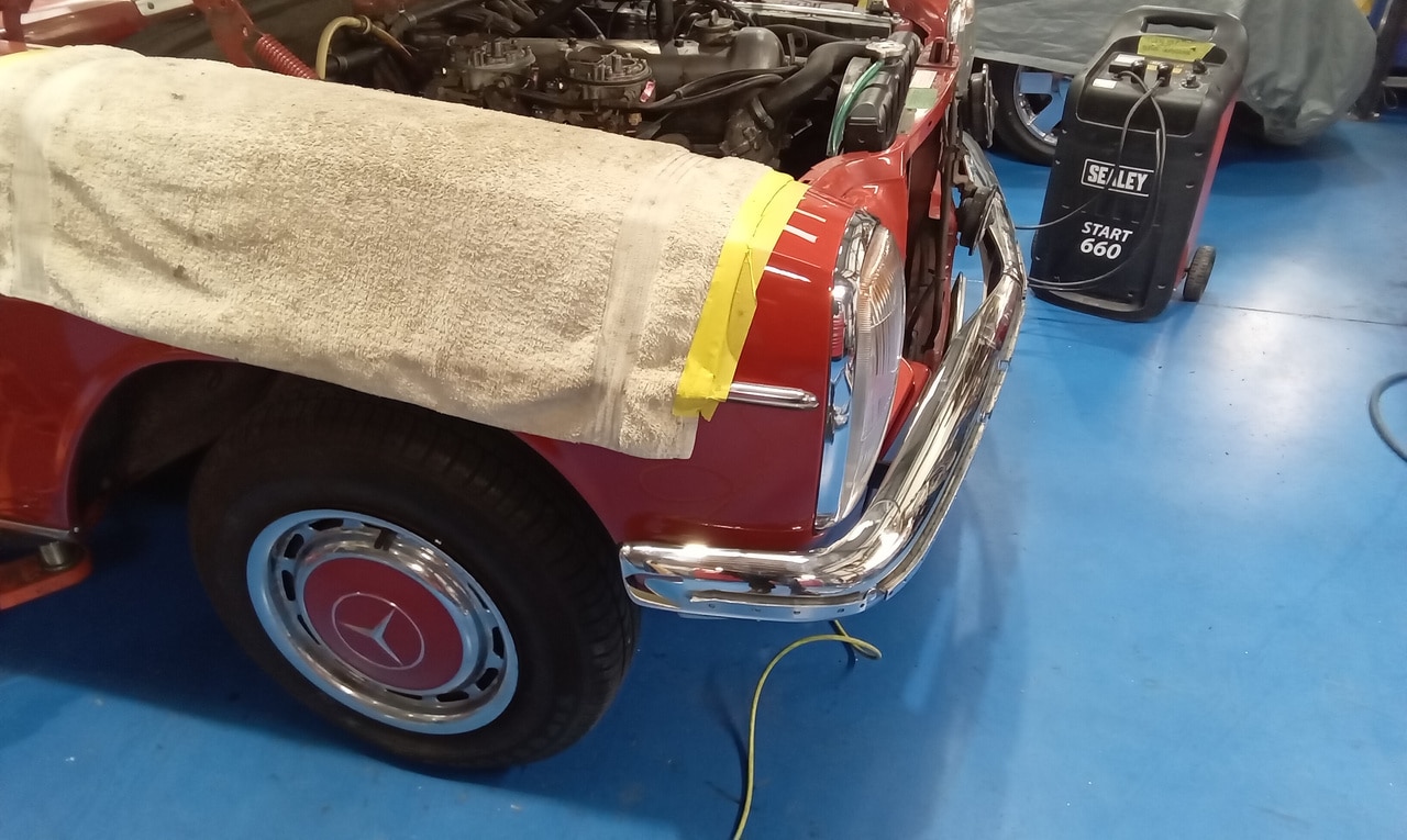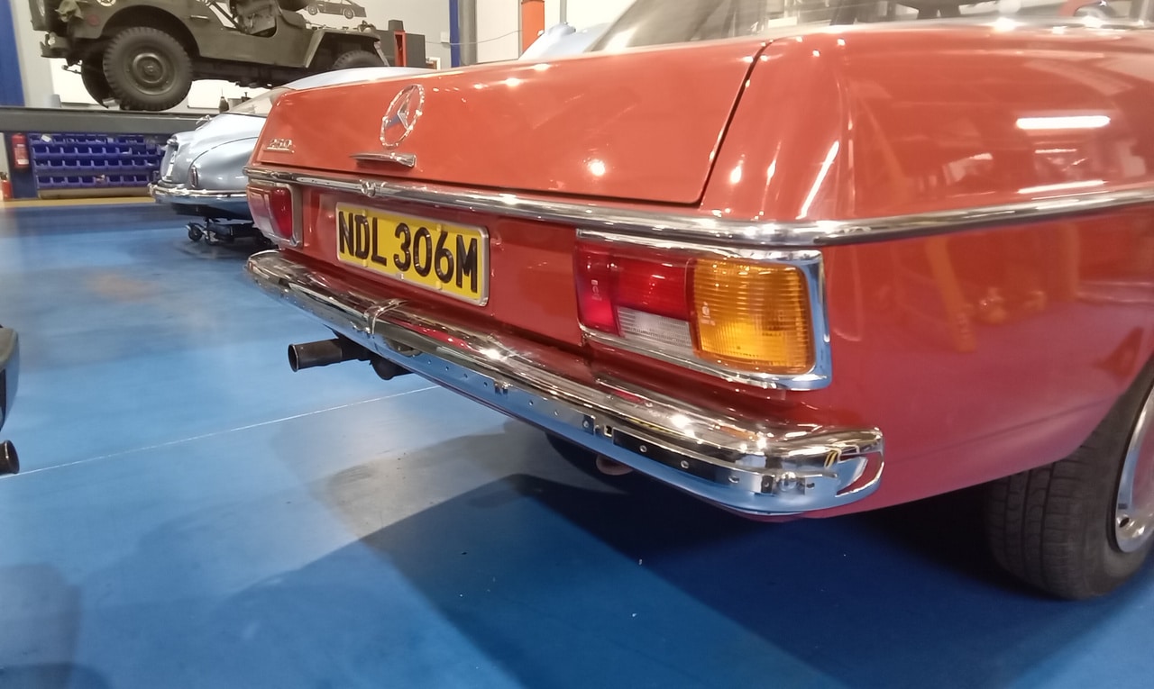 The 1973 Mercedes 250 has been in the Bridge Classic Cars mechanical workshop after our paint and body had finished with their jobs in this classic German saloon car. Our technician Jon has been working his way through the mechnical work the car needs.