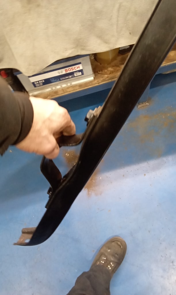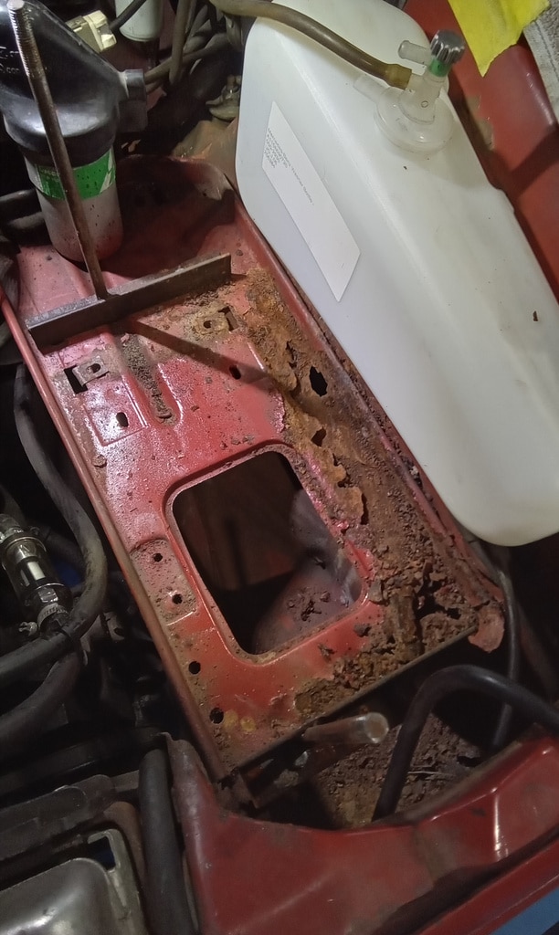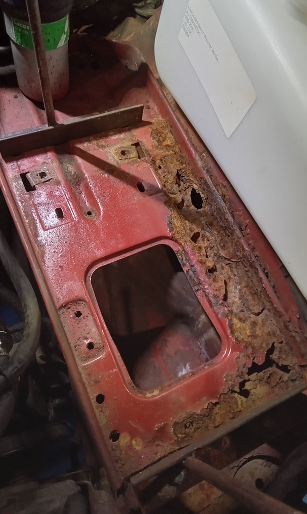 ”Get off ramp and tidy area. Remove battery for replacement and found battery tray corroded and holed.”
