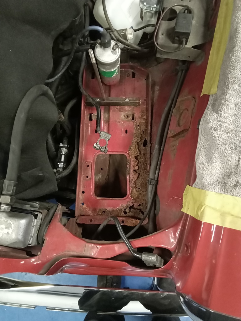 After Jon had discovered the rust on the wing and the battery tray, the project was briefly turned over to our fabricator and technician Greg to remedy and get the areas repaired.