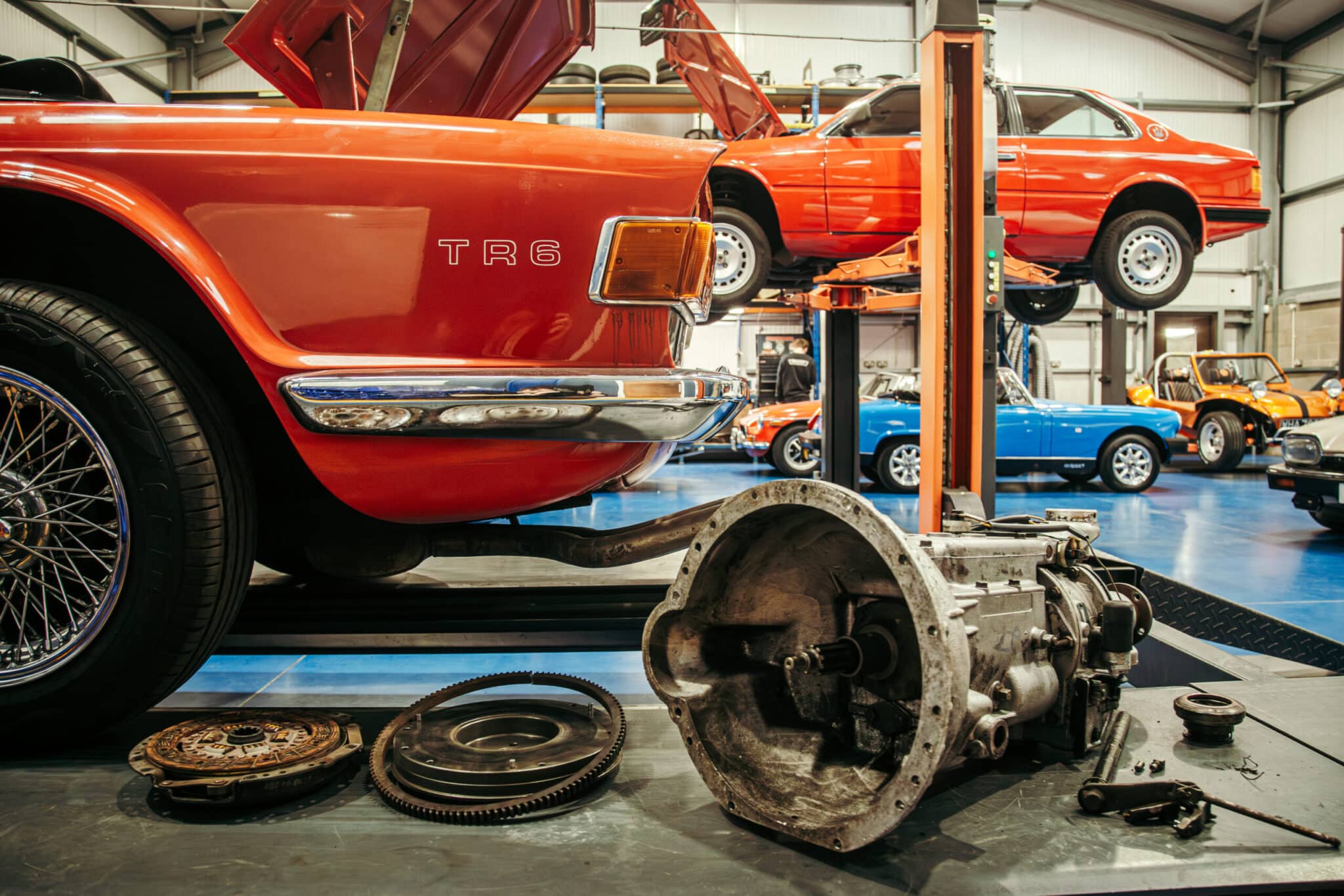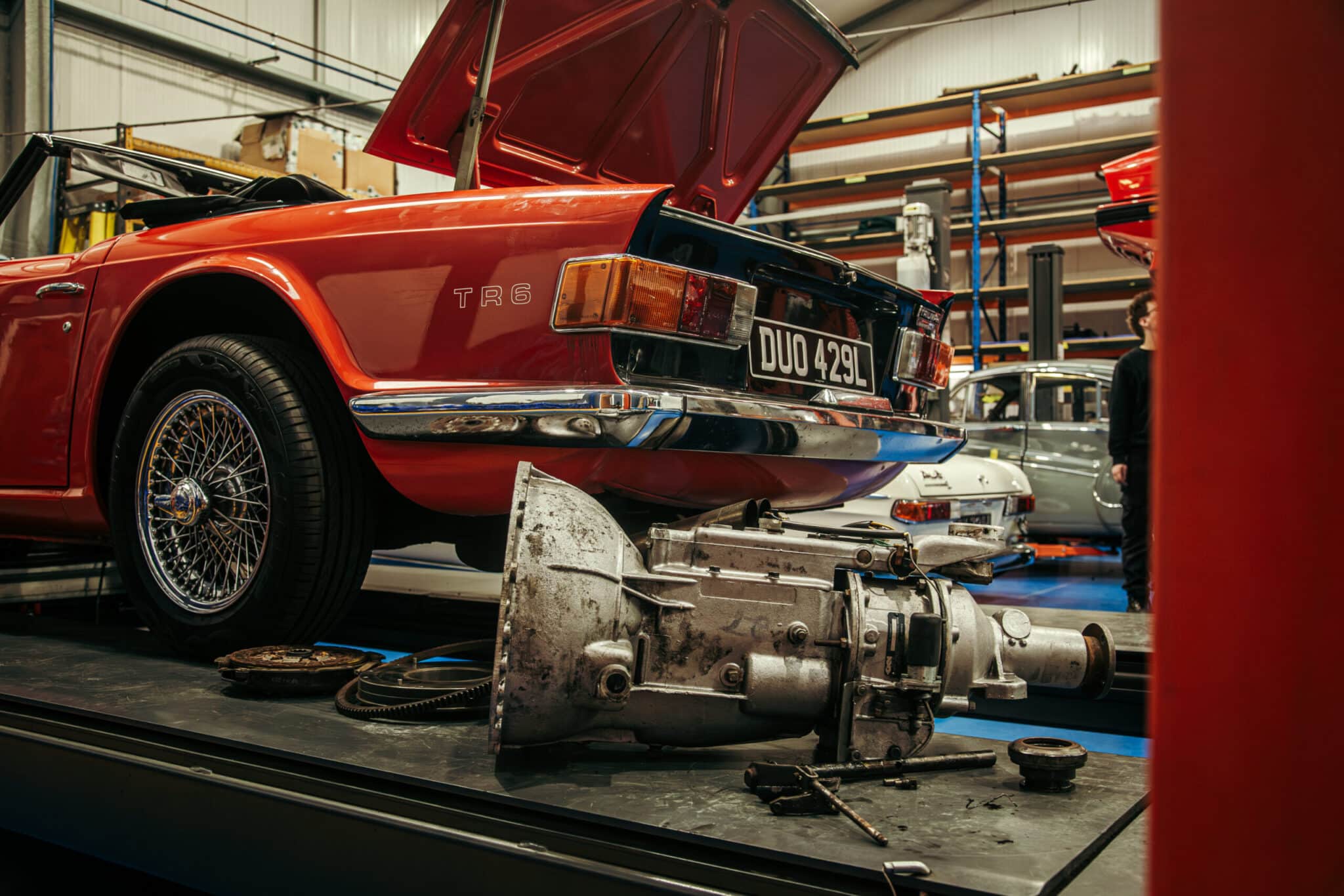 The team here at the Bridge Classic Cars HQ have been diving in deeper to the 1973 Triumph TR6. Rob, our resident Triumph specialist, has been carefully taking apart the drivetrain of the classic British sports car. Once arrived, the car was diagnosed with a starter motor issue, clutch issue, release bearing issue and a throughout bearing issue which the team are recitifying.